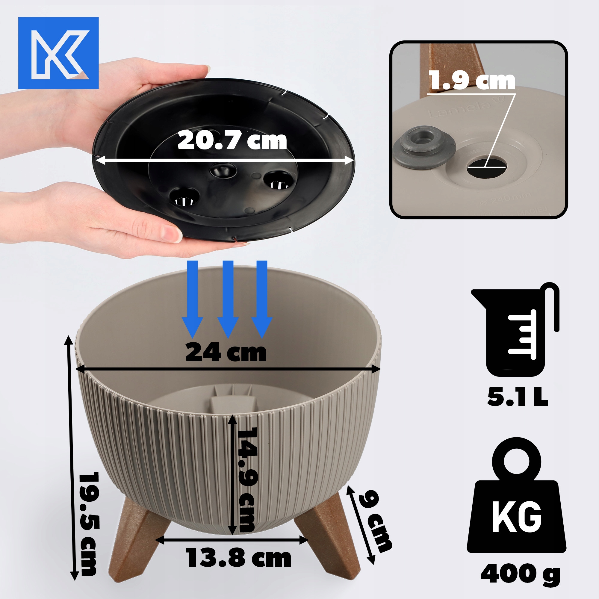 ЦВЕТОЧНЫЙ ГОРШОК KADAX ЦВЕТОЧНЫЙ ГОРШОК 24см С ВСТАВКОЙ В КРЫШКУ ДЛЯ ЧАШИ