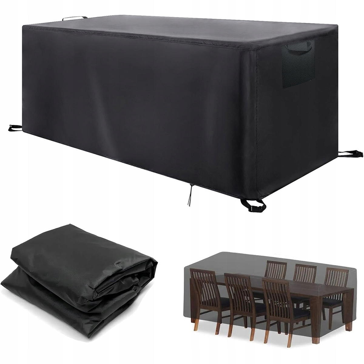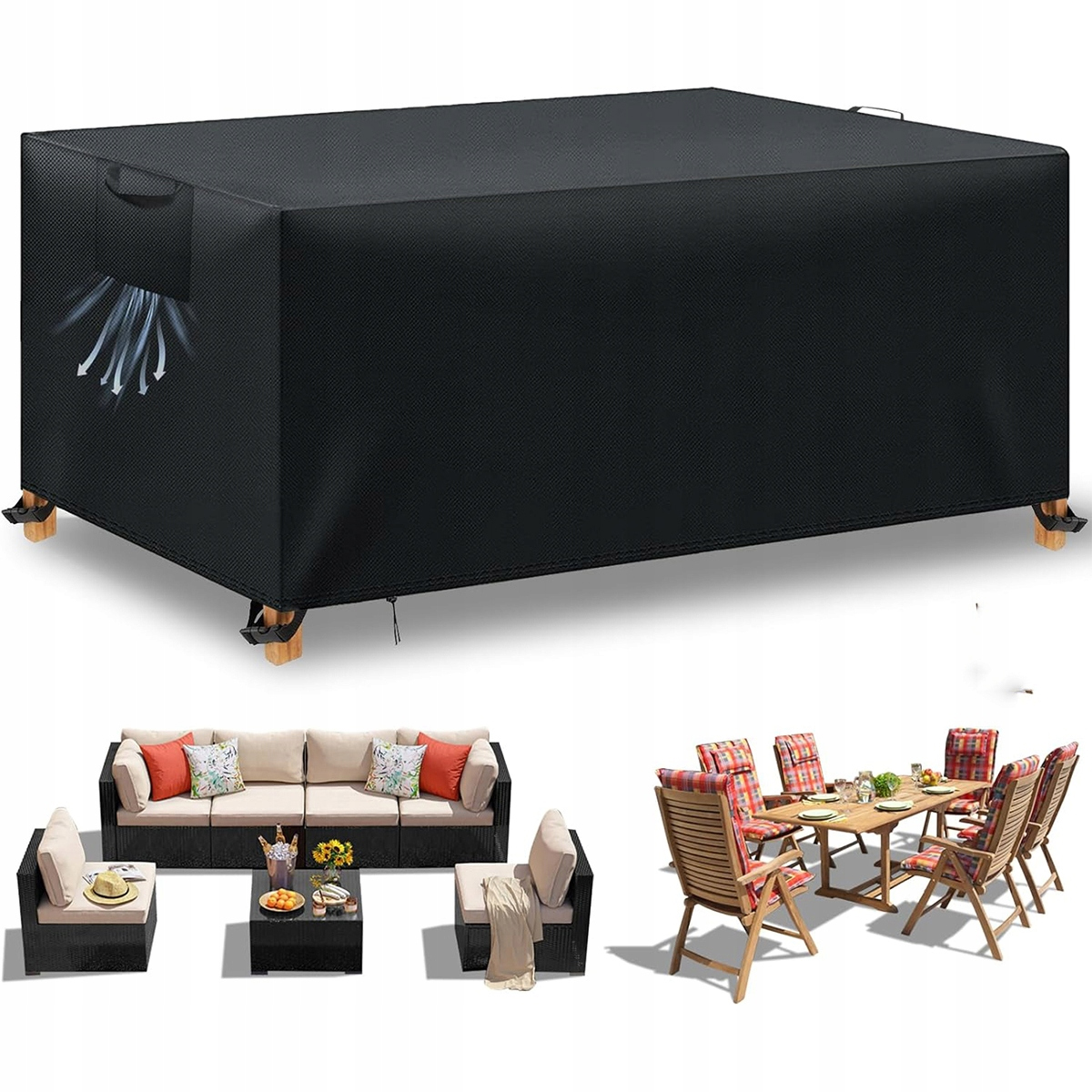 крышка для садовой мебели с 4 полосками с пряжкой + 2 ручки + 2 отверстия для вентиляции + нижняя натяжная веревка, водонепроницаемый тарпалинь для сада, ветропроницаемые, анти-UP, прочная ткань Oxford 420D для групповых садовых столов, садовая мебель (снаружи черный + внутри) <) <