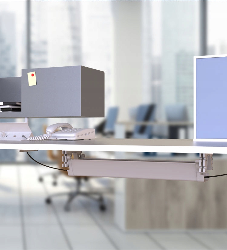 Сохраняйте аккуратный и чистый вид под столом с помощью Mozos CT550WH. Проложите кабели в кабельном лотке через пространство вверху и через отверстия с обеих сторон органайзера. Благодаря большой ширине и глубине вы легко сможете разместить там все ненужные кабели и удлинители. Изделие изготовлено из высококачественных материалов. Он очень прост в сборке и универсален в использовании. Сам кормушку можно регулировать на двух уровнях высоты. Благодаря этому вам не придется беспокоиться о том, хватит ли места под столешницей даже для простых розеток. Материал, из которого изготовлен органайзер, пожаробезопасен. Это очень важная функция, обеспечивающая безопасное использование.