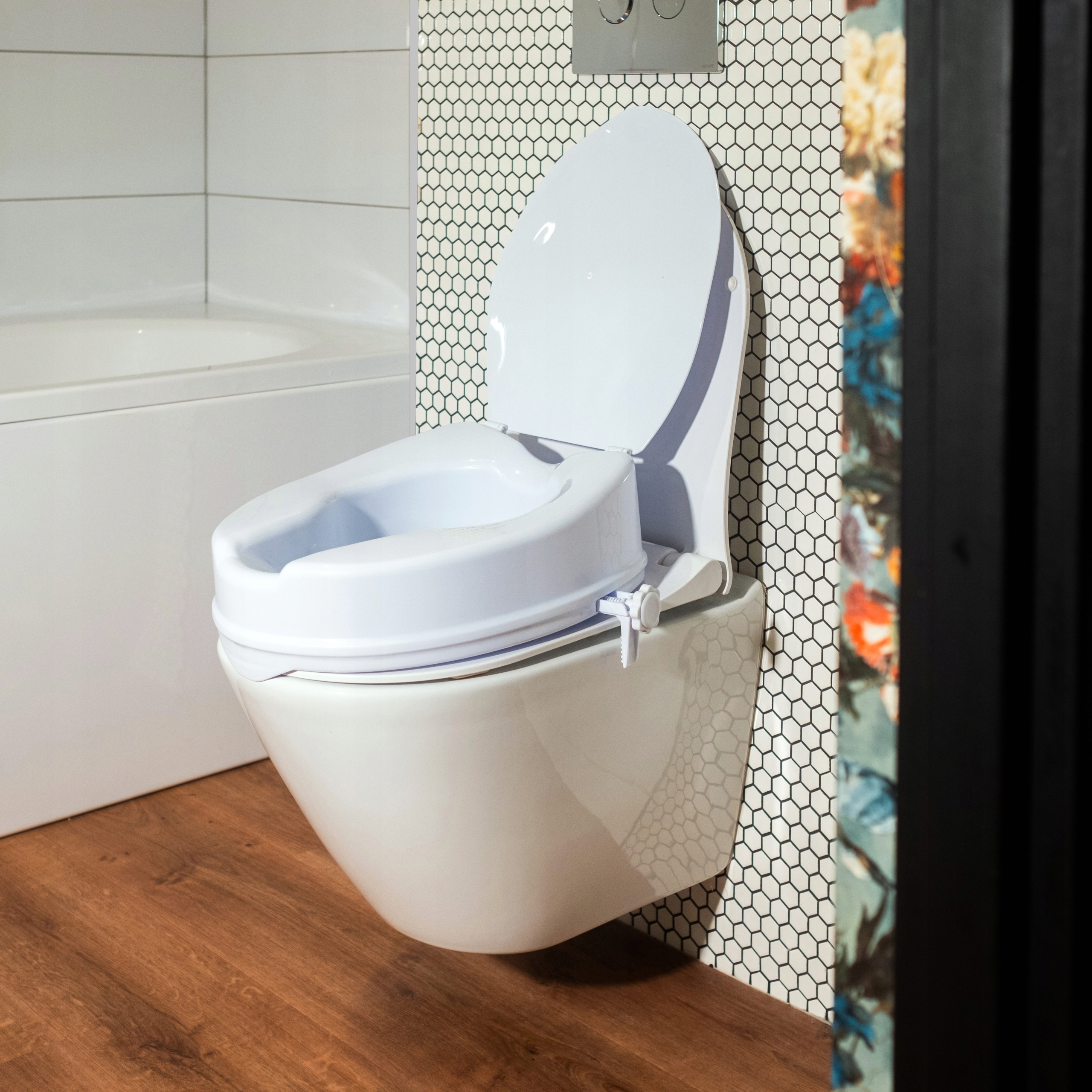 Прочный пластик, изготовленный методом выдувного формования. Это приподнятое сиденье для унитаза поднимает сиденье на 10 см выше, чем обычное сиденье для унитаза. Подходит для большинства стандартных сидений для унитаза. Насадка обеспечивает более простой и безопасный способ зайти в туалет и выйти из него. Имеет клапан, который выглядит и ощущается так же, как обычное сиденье для унитаза. Их можно надежно прикрепить к большинству унитазов стандартной формы, и для установки не требуются инструменты.