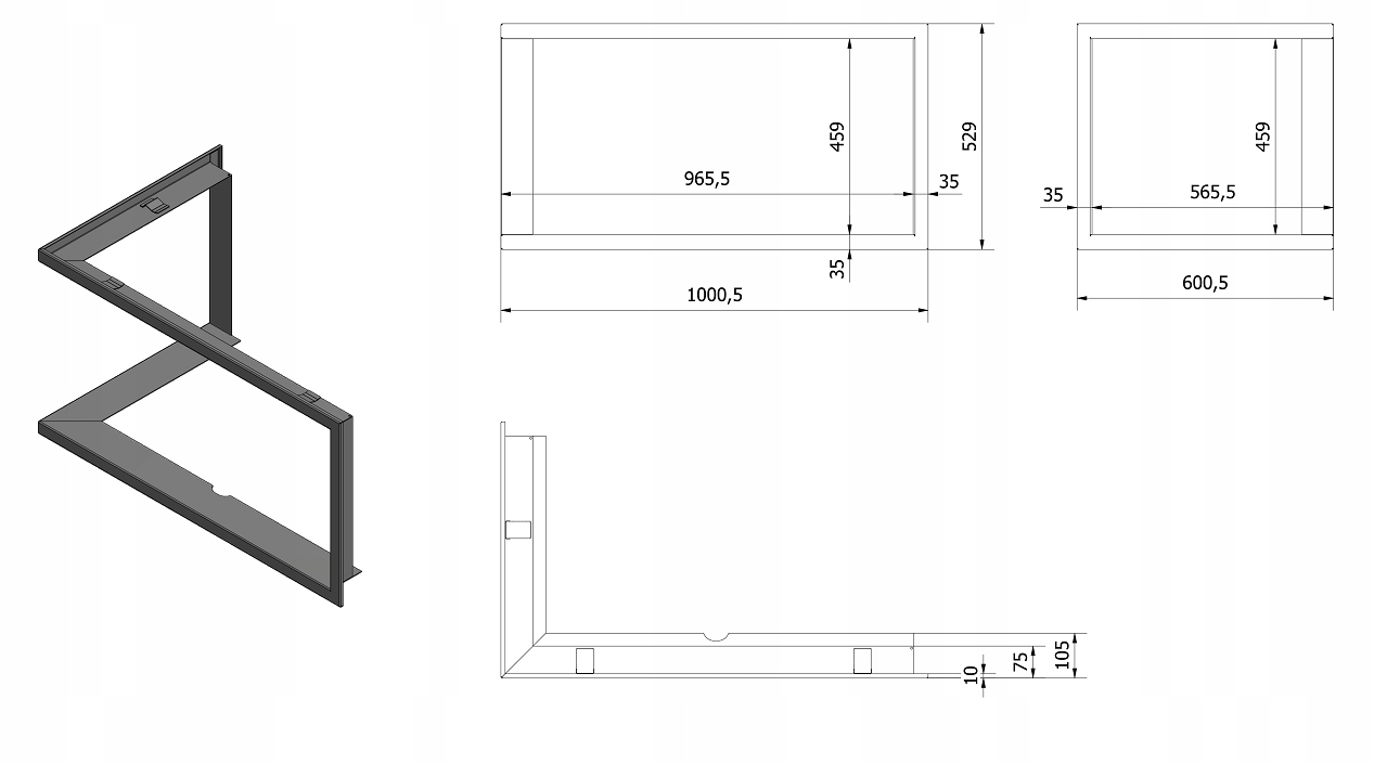 Стальная декоративная рамка для воздушной вставки гильотины BS Nadia 14 слева - ШИРИНА РАМКИ 35 мм