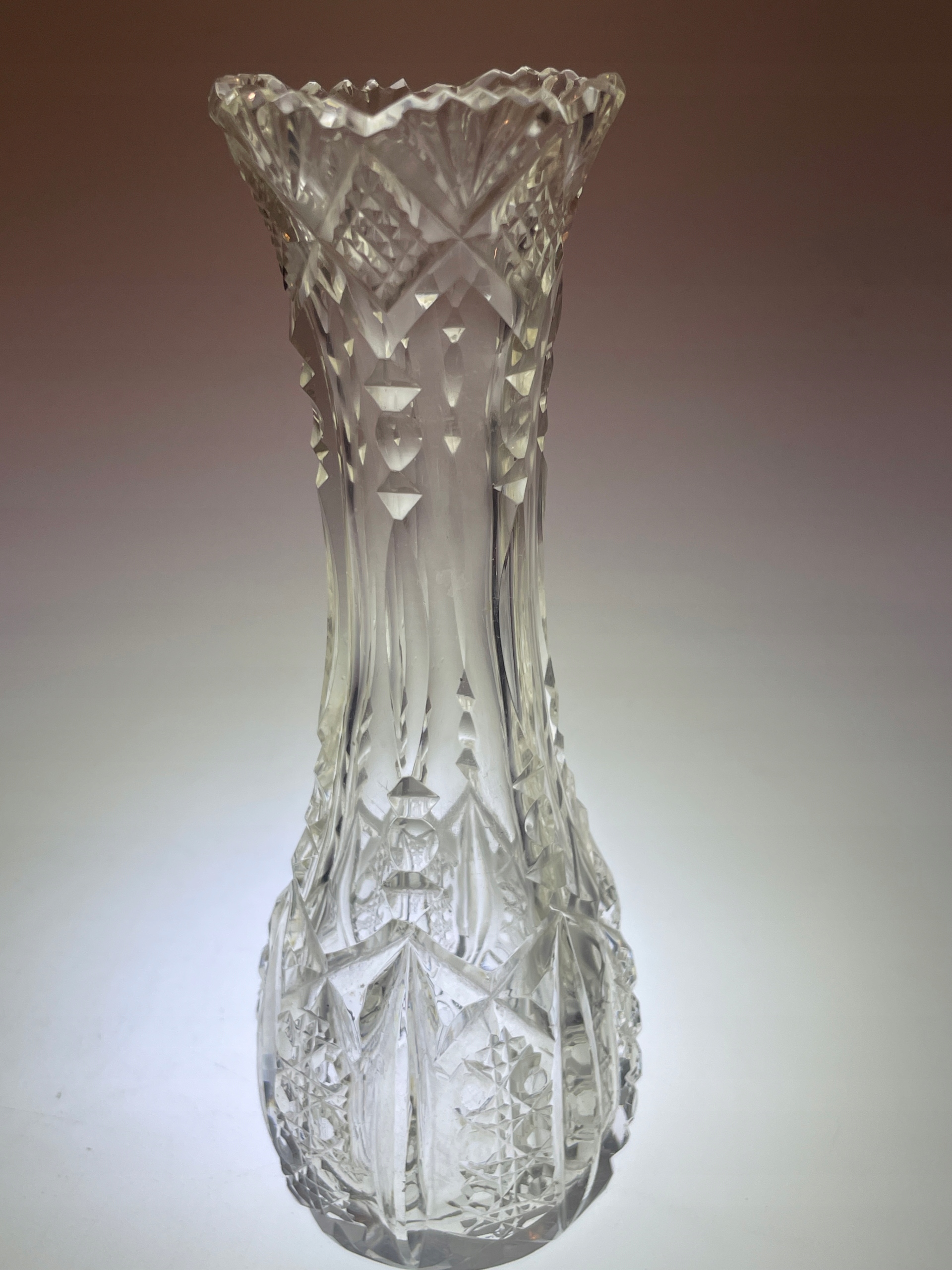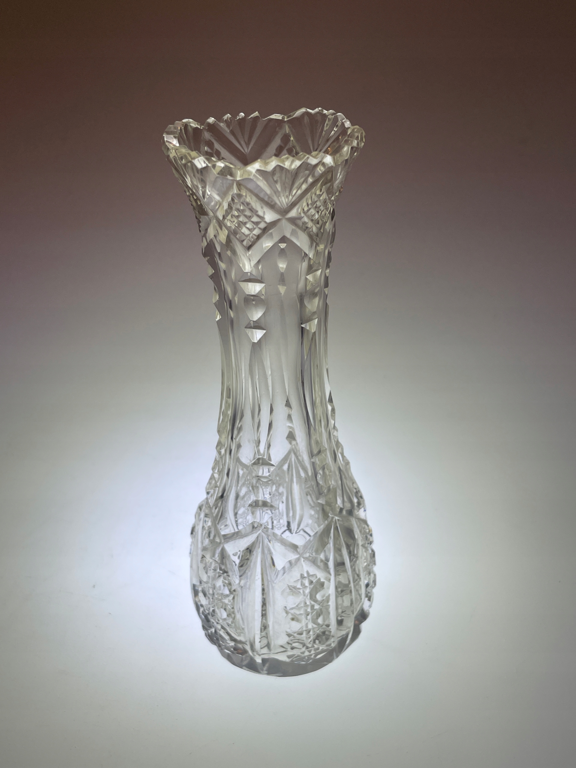 Кришталева ваза довоєнного огранювання, висота 17,5 см