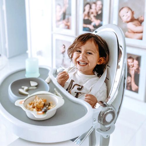 Пневматическая регулировка высоты облегчит не только кормление за кухонным столом и на диване, но и контакт с родителем.