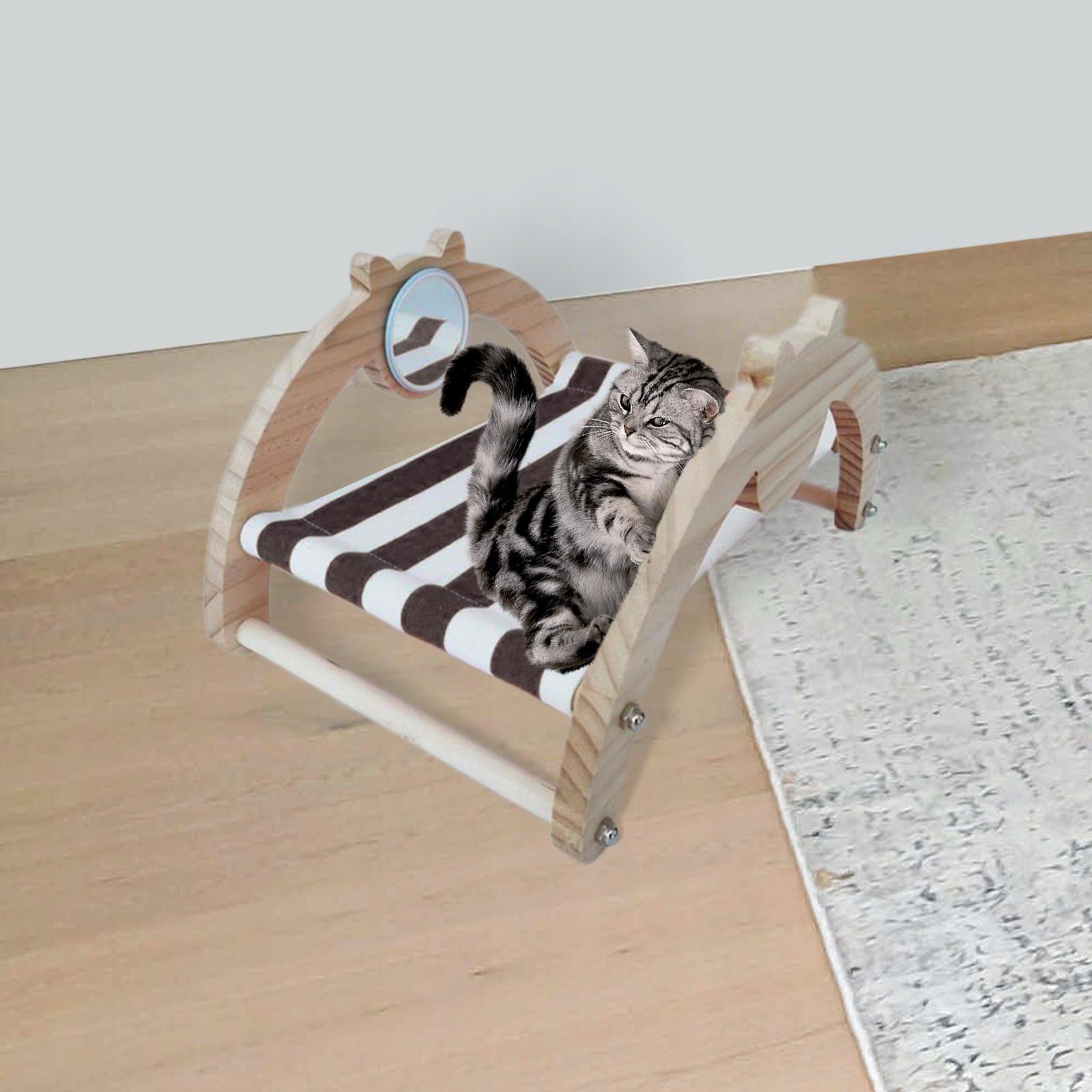 [Высококачественный материал]: лежанка для кошек изготовлена из дерева, а кошачий гамак на приподнятой кровати удобен для сна, прочен и долговечен для маленьких и больших кошек.