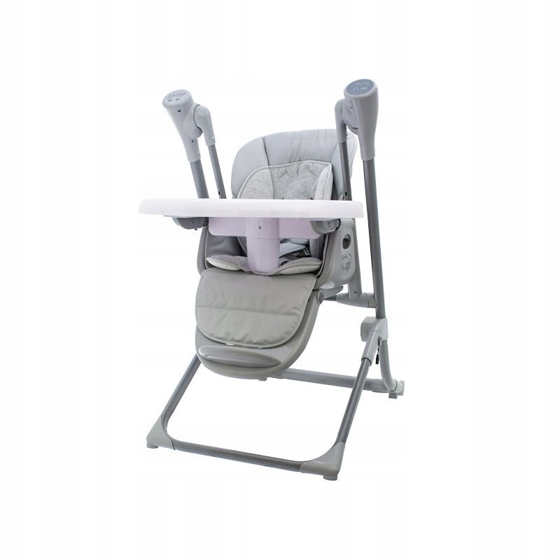 Стульчик для кормления с функцией качания. Кресло имеет 6 доступных вариантов высоты и четыре положения регулировки спинки. Функция поворота доступна в самом нижнем положении. Лоток для кормления можно установить в трех положениях. Столешница состоит из двух частей и может быть приспособлена для еды или игры. Регулируемая подножка. Изделие имеет панель управления с: пятью диодами, показывающими текущую скорость качания, таймером с тремя временными интервалами и кнопкой воспроизведения музыки.
