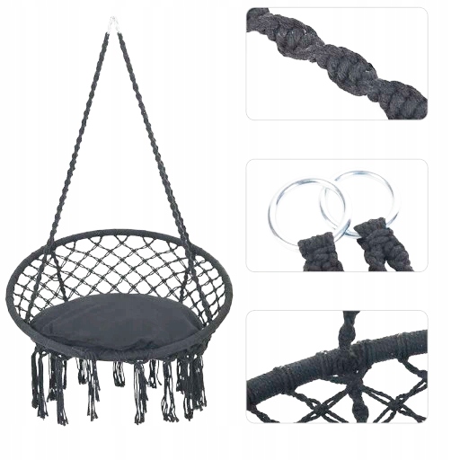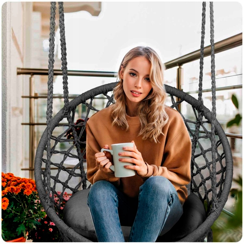 Ажурные качели в стиле бохо добавят неповторимый акцент любому дому. Качельная конструкция ручной работы изготовлена в технике макраме. Четыре троса на каркасе сиденья легко выдерживают нагрузку до 150 кг.
