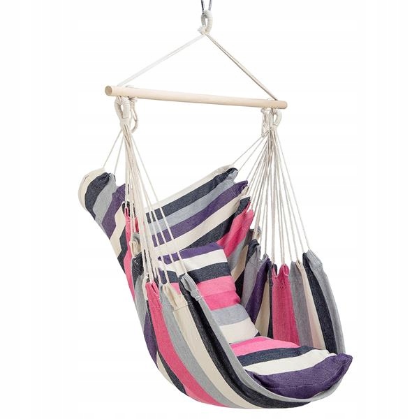 Такие виды стульев немного напоминают гамак, но их гораздо проще собирать. Это связано с тем, что мы вешаем их за одну ручку. Это позволяет установить его дома, на балконе, в саду или даже взять любимое кресло в поход. Они также станут альтернативой, когда не хватает места, чтобы повесить гамак. Усиленная стальная ручка позволит использовать кресло долго и безопасно.