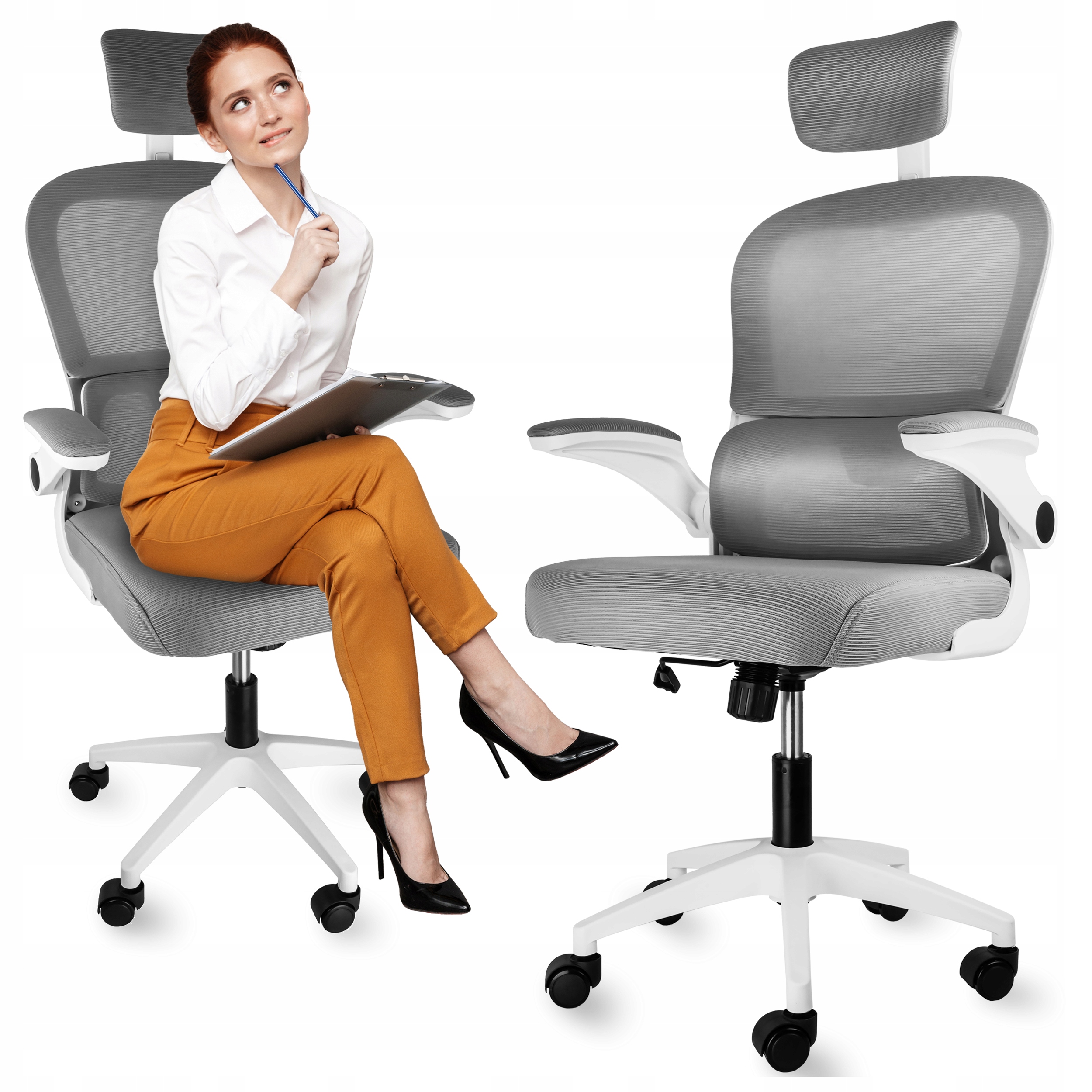 КРІСЛО ПОВОРОТНЕ ДЛЯ РОБОЧОГО СТОЛУ ЕРГОНОМІЧНЕ ОФІСНЕ КРІСЛО БІЛЕ РЕГУЛЬОВАНЕ