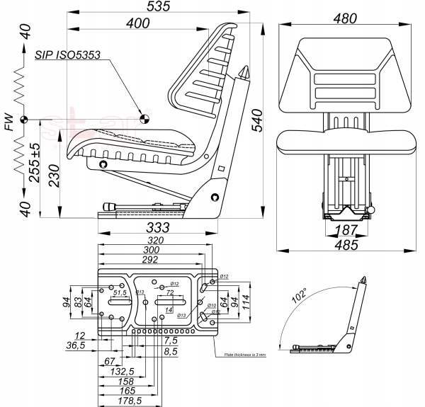 Основа достаточно широкая и имеет несколько крепёжных отверстий, что увеличивает возможности использования сиденья в другие тракторы.