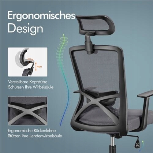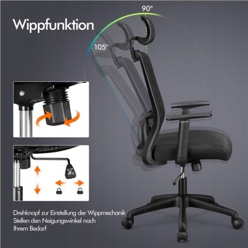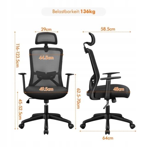 - Индивидуальное расслабление: рабочее кресло оснащено высокой сетчатой спинкой, регулируемым подголовником и фиксированным подлокотником для обеспечения полной поддержки. Высоту сиденья также можно отрегулировать в соответствии с индивидуальными потребностями от 45 до 52,5 см.