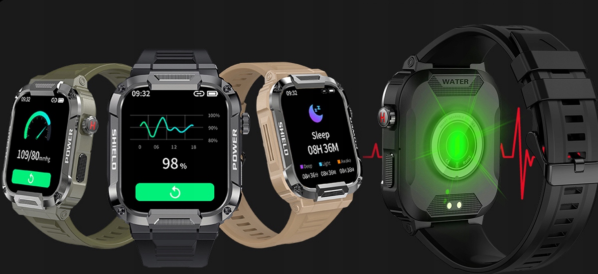 Корпус часов изготовлен из высококачественного твердого материала ABS и металла. SПРОКЛАДНАЯ ЗАДНЯЯ КРЫШКА С НОВЕЙШЕЙ СИСТЕМОЙ ОПТИЧЕСКИХ ДАТЧИКОВ И ЭЛЕКТРОДОВ обеспечивает водонепроницаемость на уровне IP68