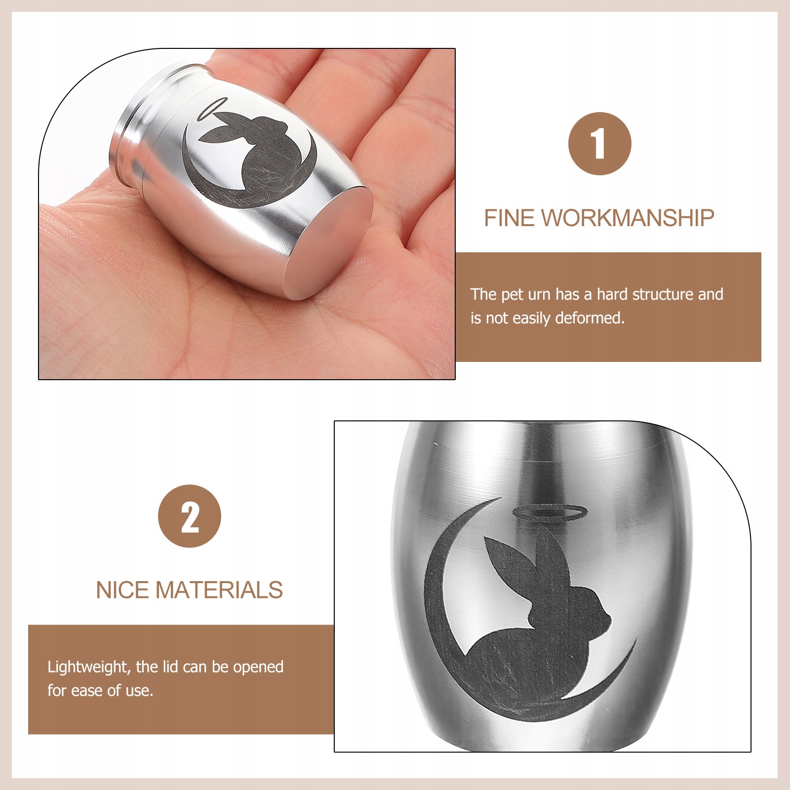 ✅Это небольшая банка для кремации домашних животных, изготовленная из прочного материала, прочная и прочная для длительного использования. Урна для домашних животных имеет прочную структуру и не поддается деформации. Легкий, крышку можно открыть для удобства использования. С этой портативной небольшой урной для домашних животных вам будет намного проще носить с собой прах вашего питомца, куда бы вы ни пошли.