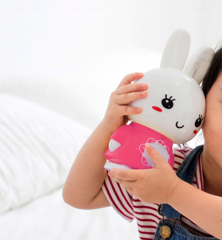 Мягкие ушки зайчика светятся нежным, меняющим цвет светом, а вся голова освещается с теплым светом, обеспечивающим комфорт при засыпании.