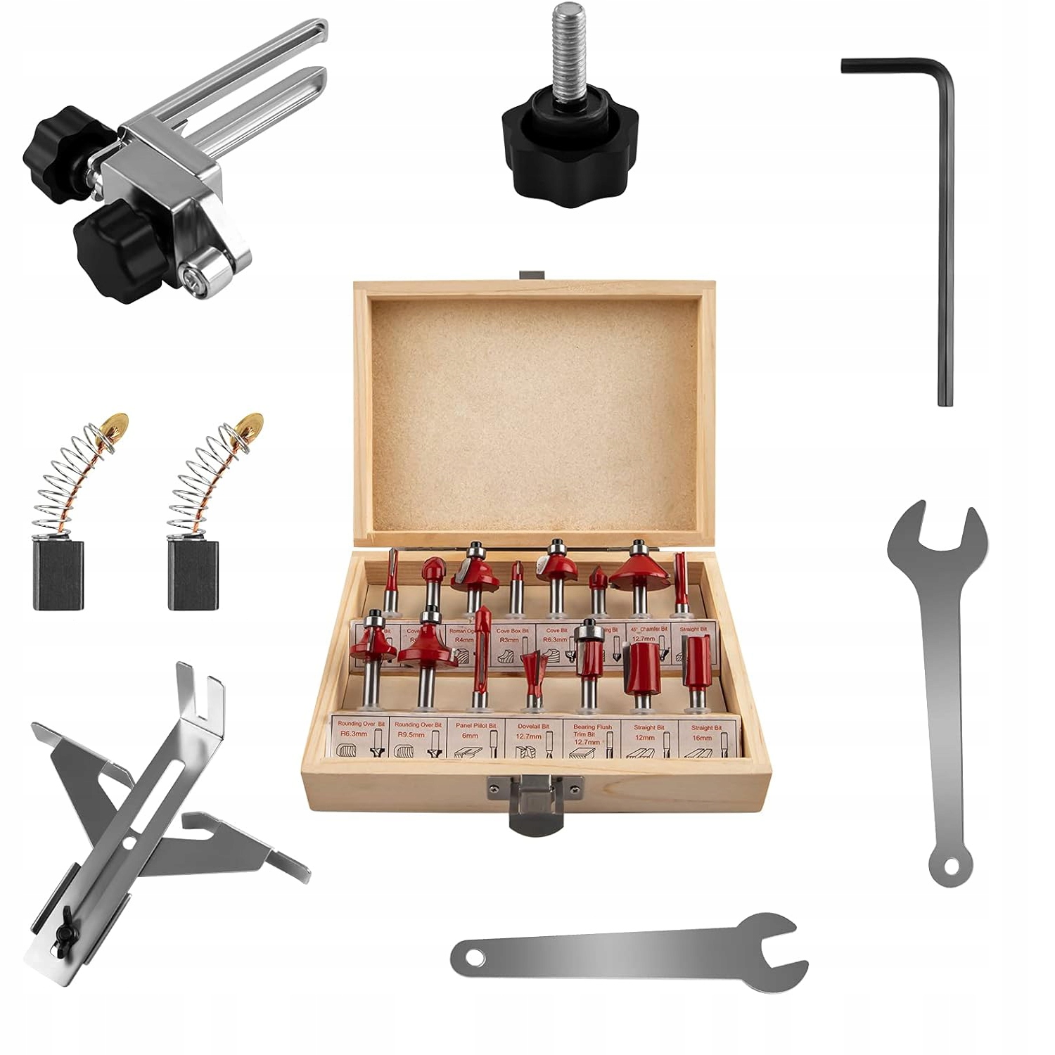 - В комплект входят различные аксессуары, такие как гаечные ключи, держатели, адаптеры направляющих шаблонов, опорные пластины и т. д.