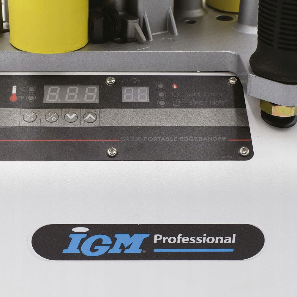Кромкооблицовочный станок BR500 имеет современный цифровой дисплей, обеспечивающий соответствующую настройку температуры и скорости подачи, который расположен в горизонтальном положении, благодаря чему процесс облицовки постоянно контролируется. Не забывайте всегда точно устанавливать необходимую температуру. Диапазон температур составляет 120-200°С +/- 1°С. Скорость подачи устанавливается на рукоятке в диапазоне 2-6 м/мин, что гарантирует оптимальную скорость и практичность упаковки.