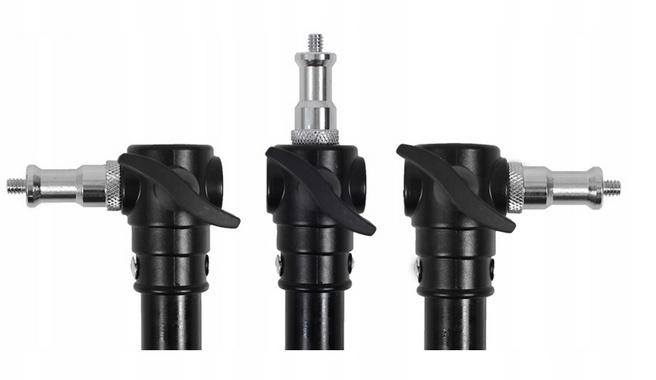 Держатель имеет возможность установки патрубка со студийным наконечником 16 мм с 1/4 и 3/8 дюйма. резьбы в трех положениях, поэтому после крепления держателя к стене или потолку мы можем дополнительно менять положение крепления патрубка между вертикальным и горизонтальным, а также его резьбу.