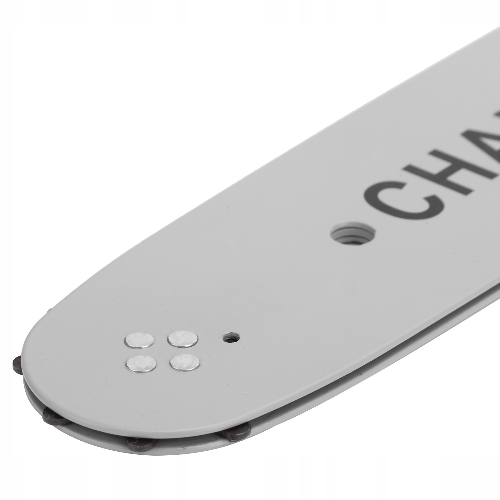 8. Поместите цепь направляющей пластины так, чтобы совместить регулировочное отверстие направляющей пластины и направление цепи.