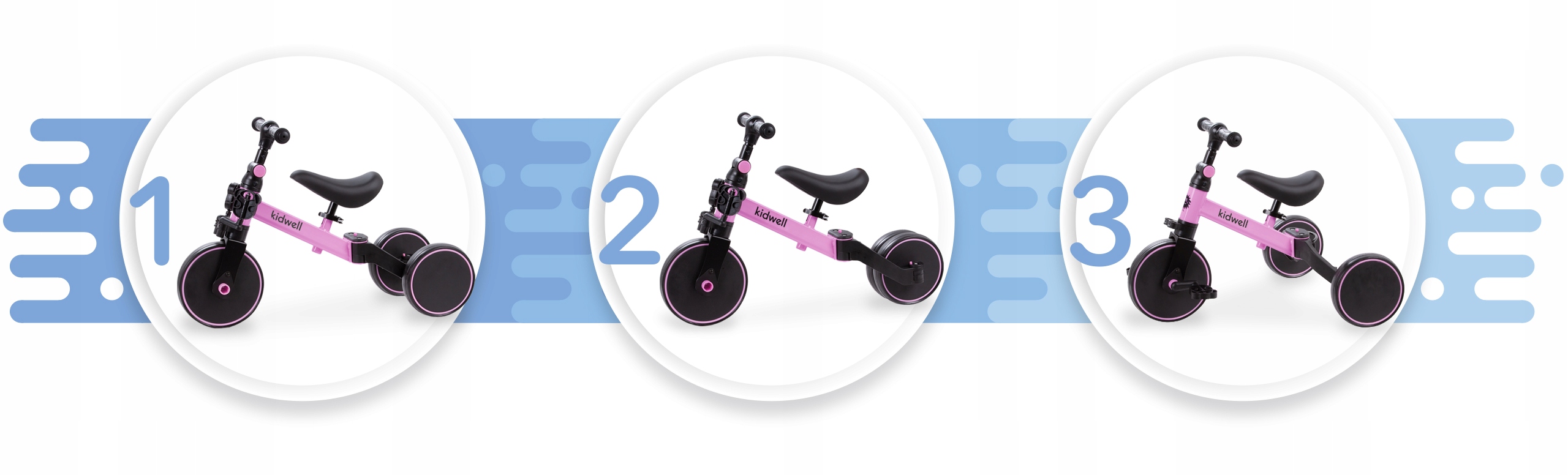 - простой и быстрый способ превратить райдер в беговел или трехколесный велосипед без необходимости использования инструментов
