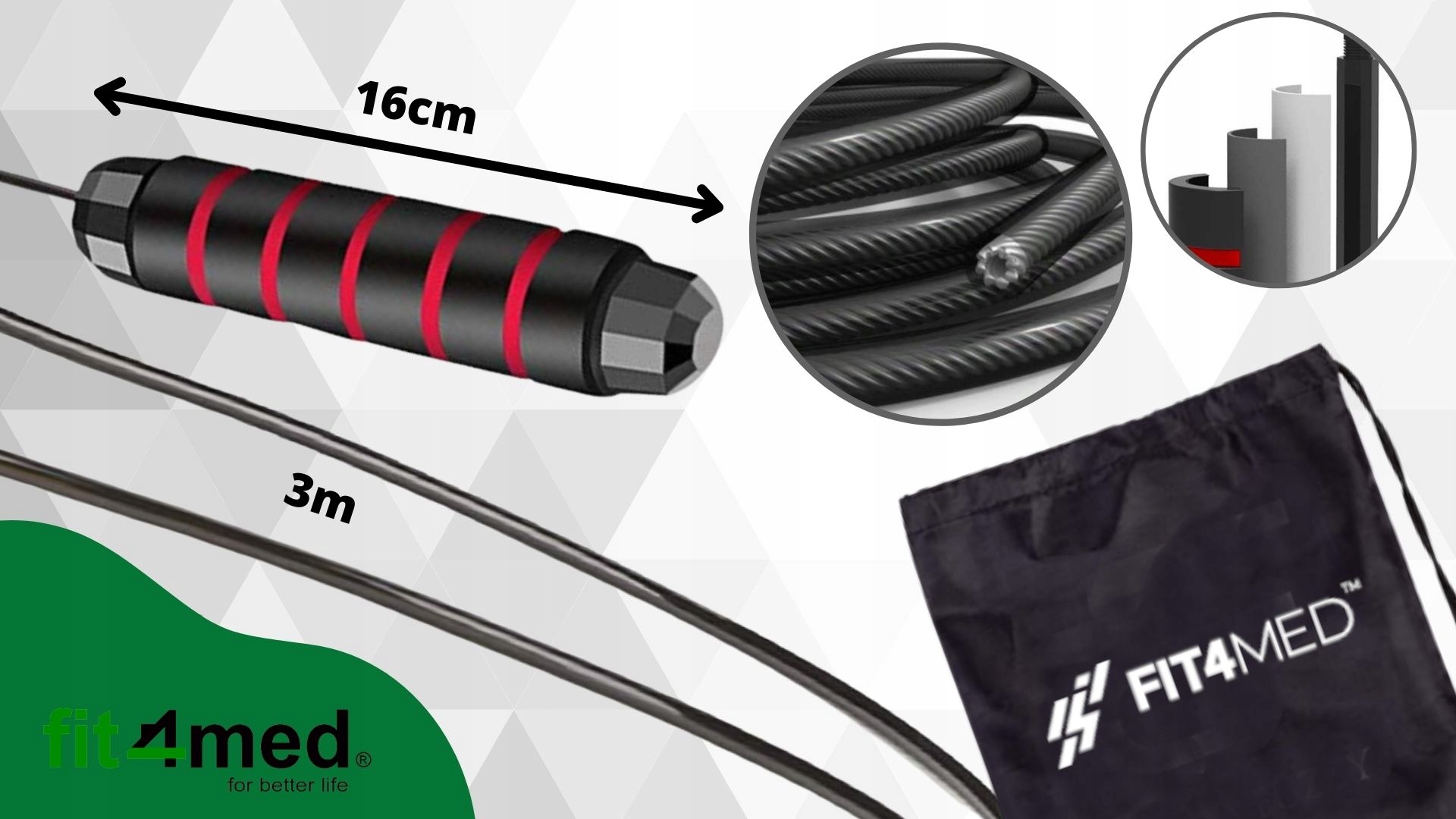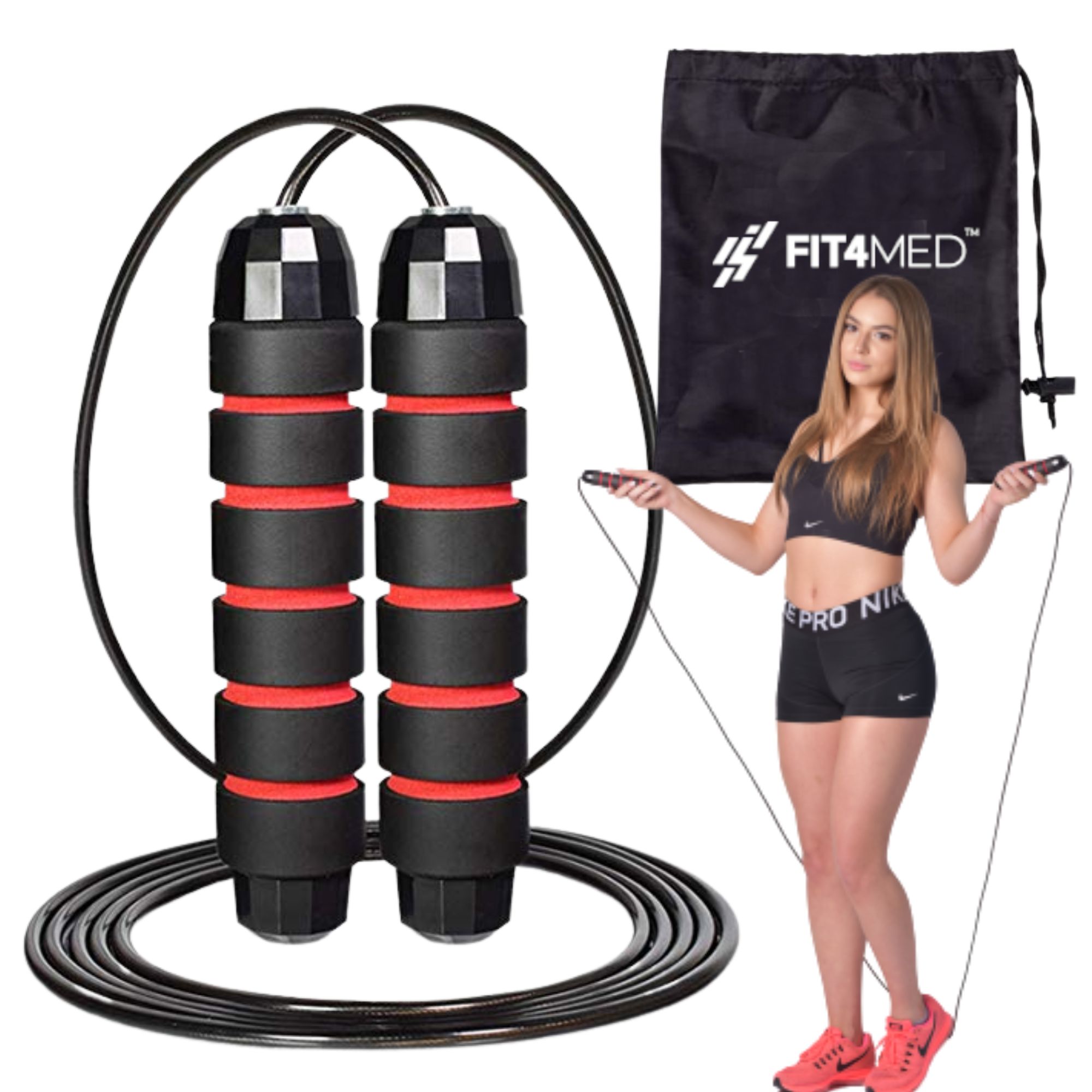 ➡️ Регулируемая скакалка на подшипниках FIT4MED с сумкой для хранения