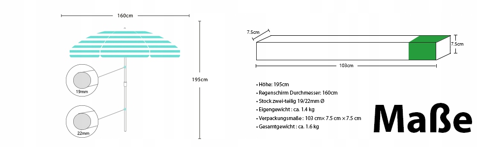 - Диаметр зонта 160 см, высота зонта 195 см.