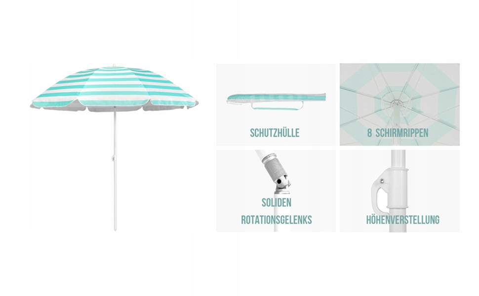 ЗОНТ СОЛНЕЧНЫЙ 160 СМ UV 20+ ПОЛОС