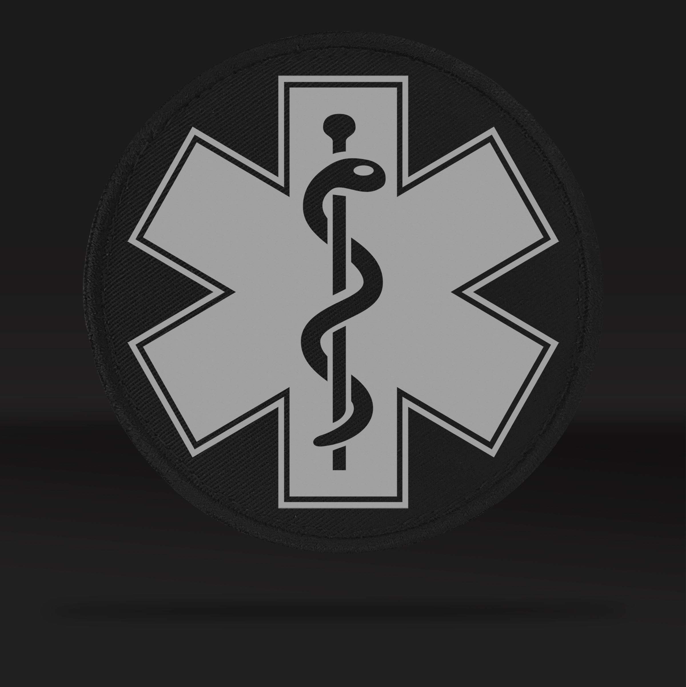 Эмблема диаметром 10см, на липучке, со светоотражающим принтом: ESKULAP