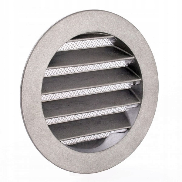 Круглая металлическая вентиляционная решетка без регулировки с сеткой от насекомых Dalap AV 125 серебристого цвета