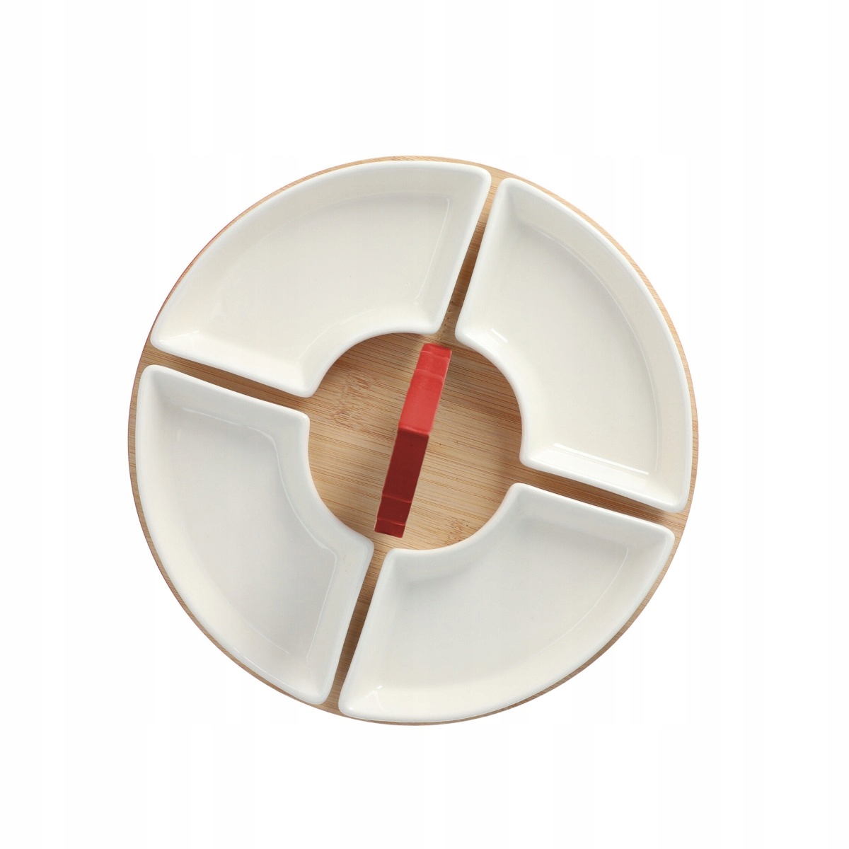 Блюдо «ТРОЭЛЬ» – прекрасная идея для рождественского стола. Удобные размеры и легкое разделение позволят вам подавать сразу несколько закусок, не опасаясь перепутать вкусы. В центральной части расположена декоративная елка, от которой отходят четыре контейнера. В них можно хранить как сухие, так и влажные продукты. Блюдо было выполнено в белом цвете, который был дополнен красными элементами.