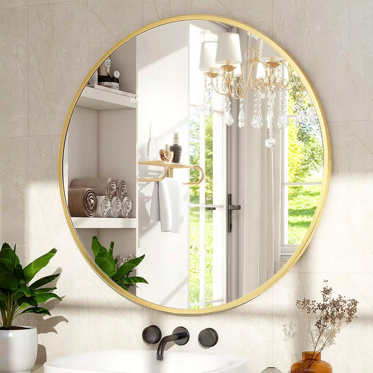80 см зеркало в рамке золотистого металла - чердак акцент на интерьер h2> зеркало диаметром 80 см является уникальным декоративным элементом, который сочетает в себе функциональность с элегантностью. Благодаря своей круглой форме и золотой раме, она идеально подходит для современных интерьеров, как в скандинавском, так и в стиле чердак. Его универсальный дизайн делает его идеальным для любой комнаты - от ванной комнаты, через гостиную до зала. Изготовленное из материалов высочайшего качества, зеркало характеризуется прочной конструкцией, которая обеспечивает долговечность в течение многих лет