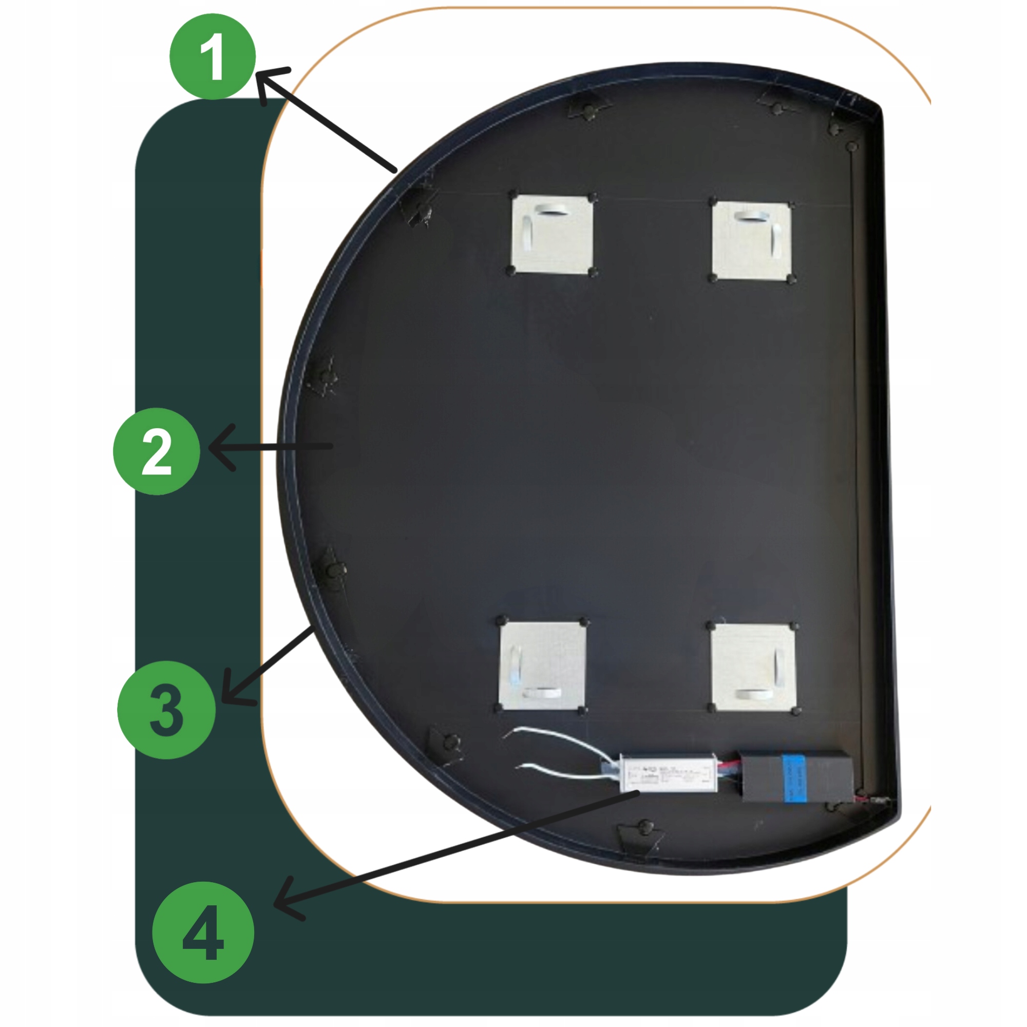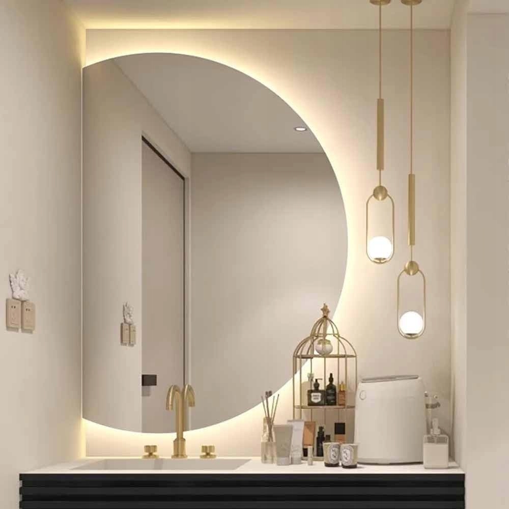 Круглое зеркало с нарезанной стороной -насажденной стороной -half -round 70 см водонепроницаемый источник питания h1>