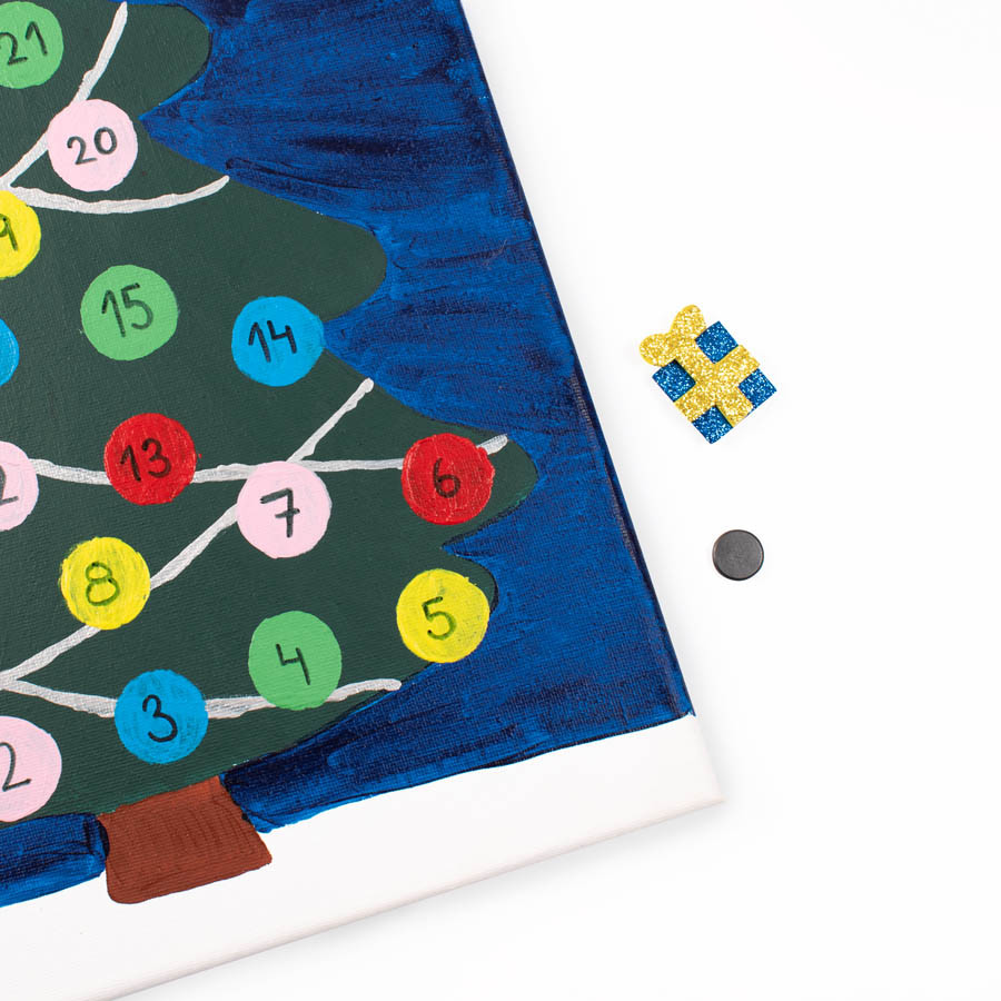 Прикрепите подарочную упаковку к доске, поместив магнит на обратную сторону, который затем соединяется с магнитом на упаковке.