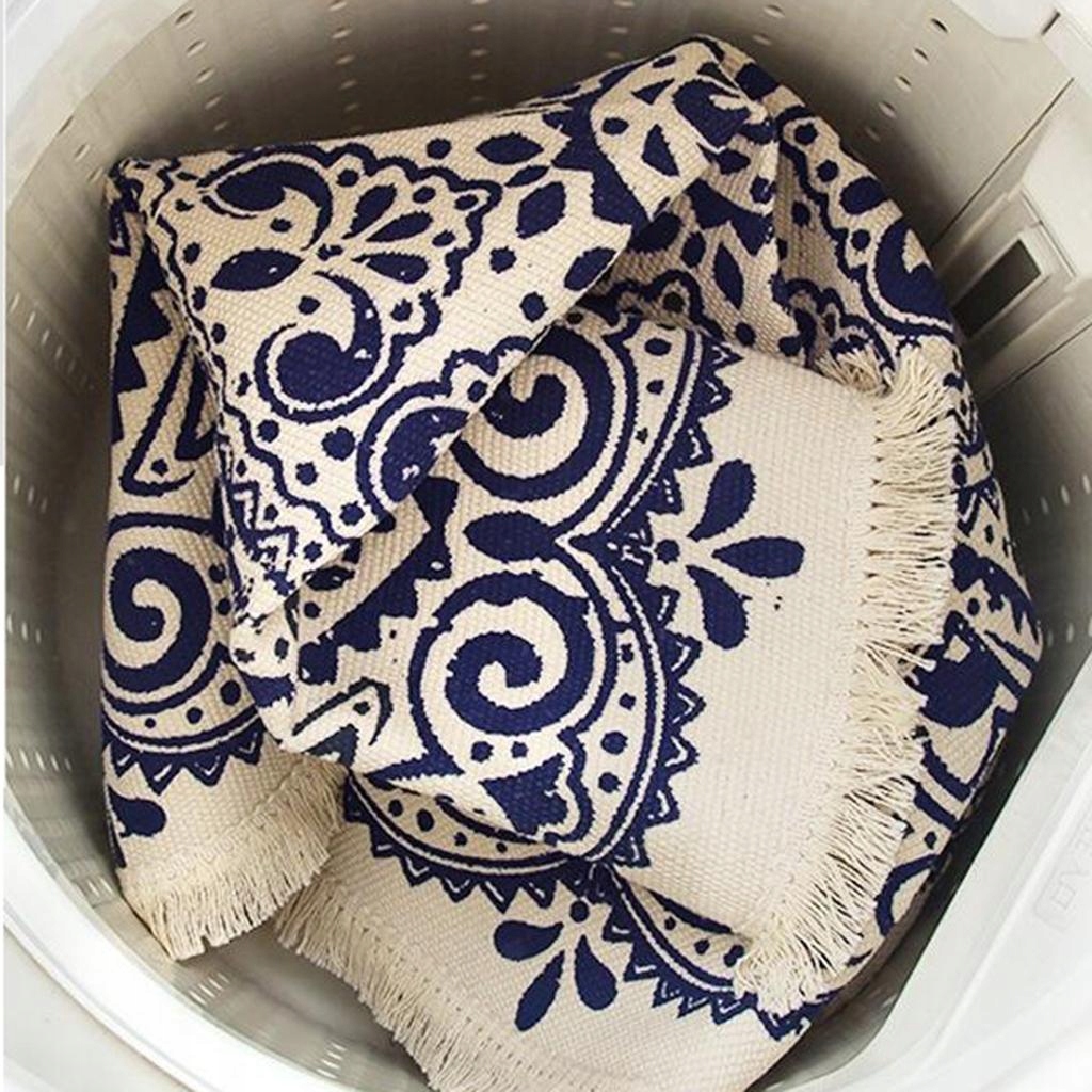Натуральный лен, хлопок и полиэстер, приятный на ощупь материал; многофункциональный напольный коврик, можно стирать в машине, также можно использовать как гобелен, диванную подушку