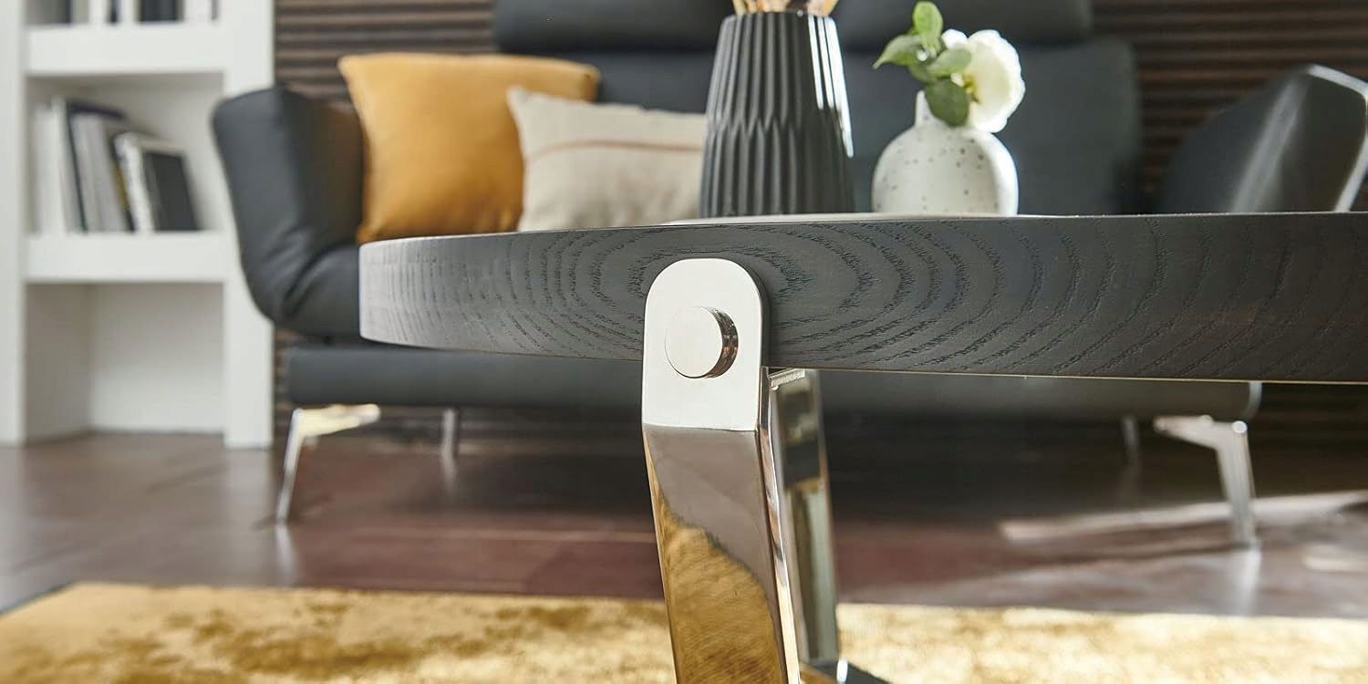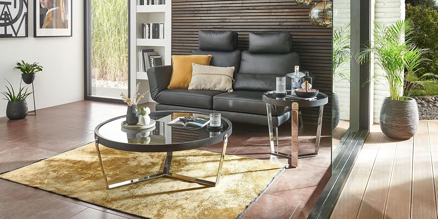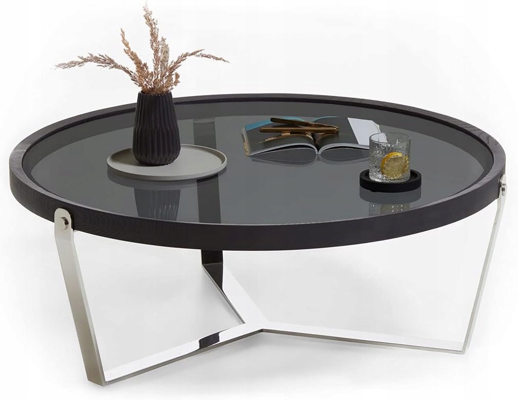 Массивный круглый журнальный столик Rizza придаст вашей гостиной футуристический и элегантный стиль. В сочетании с современным дымчатым стеклом и современными матовыми элементами из нержавеющей стали стол притягивает взгляды. Тарелка из прозрачного дымчатого стекла обеспечивает идеальную поверхность для хранения напитков, закусок или других декоративных предметов. Красивая деревянная рама красивой формы из черного МДФ с контрастной фурнитурой из матовой нержавеющей стали завершает современный дизайн. Каркас стола изготовлен из нержавеющей стали с матовым серебристым отливом и обеспечивает прочность и долговечность. Высокое качество изготовления в сочетании с современным внешним видом найдут место в каждой гостиной. Он подойдет к любому интерьеру, независимо от того, кресло ли это, диван или тахта. Благодаря невысокой высоте стола 38 см журнальный столик вписывается в современные и модные на данный момент интерьеры.