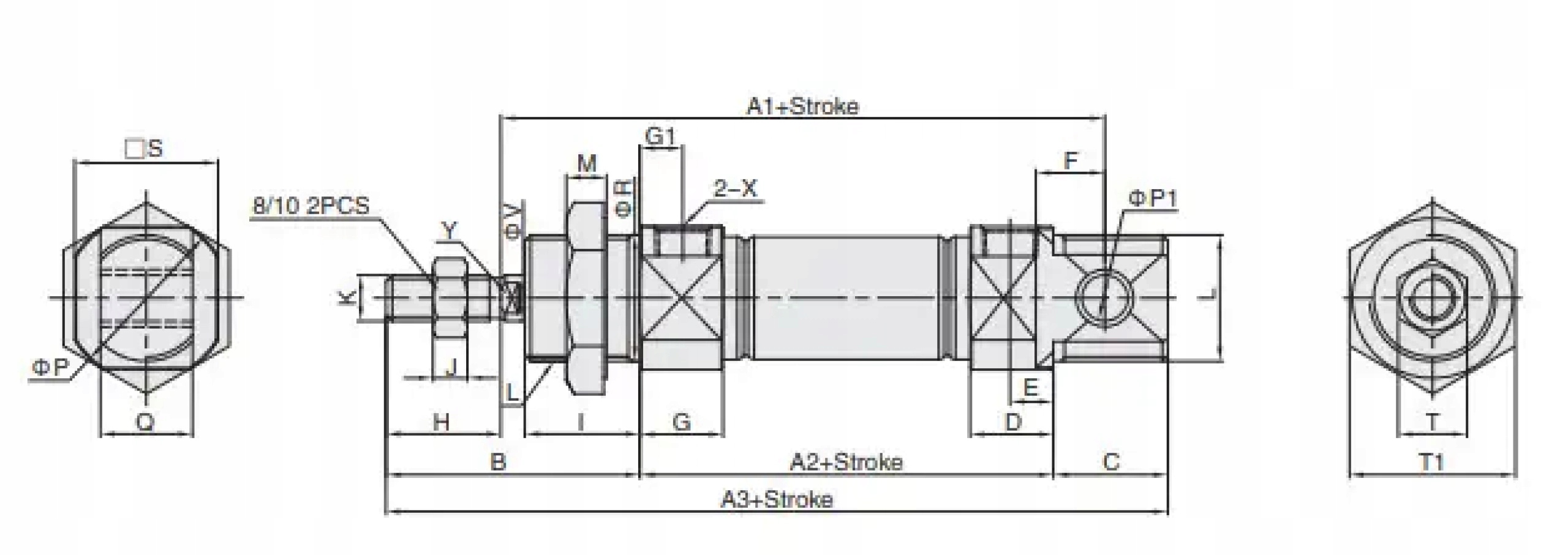 Круглый привод ISO6432, амортизатор 16x25. механический
