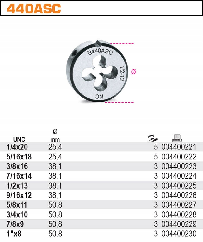 КРУГЛЫЙ РЕЗЬБОВОЙ СТАНОК UNC INCH 7 / 16X14 BETA 440ASC