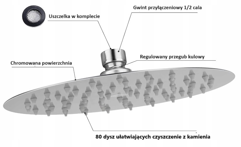 Дождевой душ также имеет стандартную внутреннюю резьбу 1/2 дюйма - 19 мм, подходящую к кронштейнам, используемым в душевых кабинах.