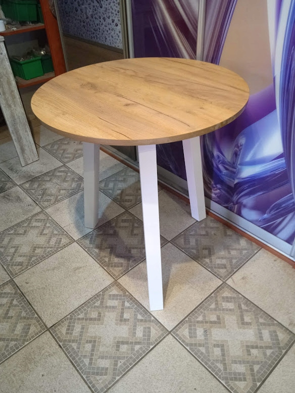 КРУГЛИЙ СТОЛ 70 см ножки крафтовий дуб білі 3