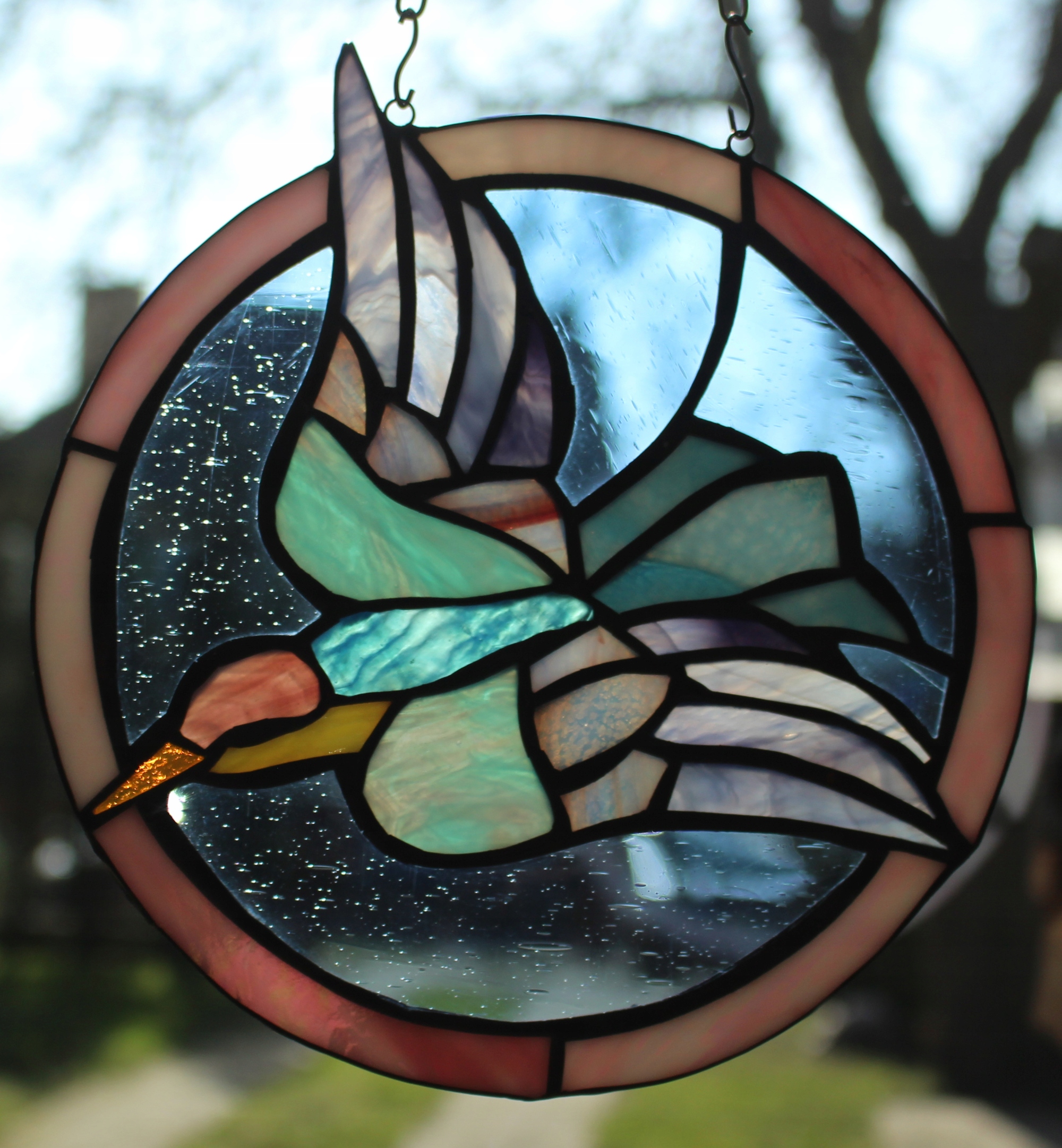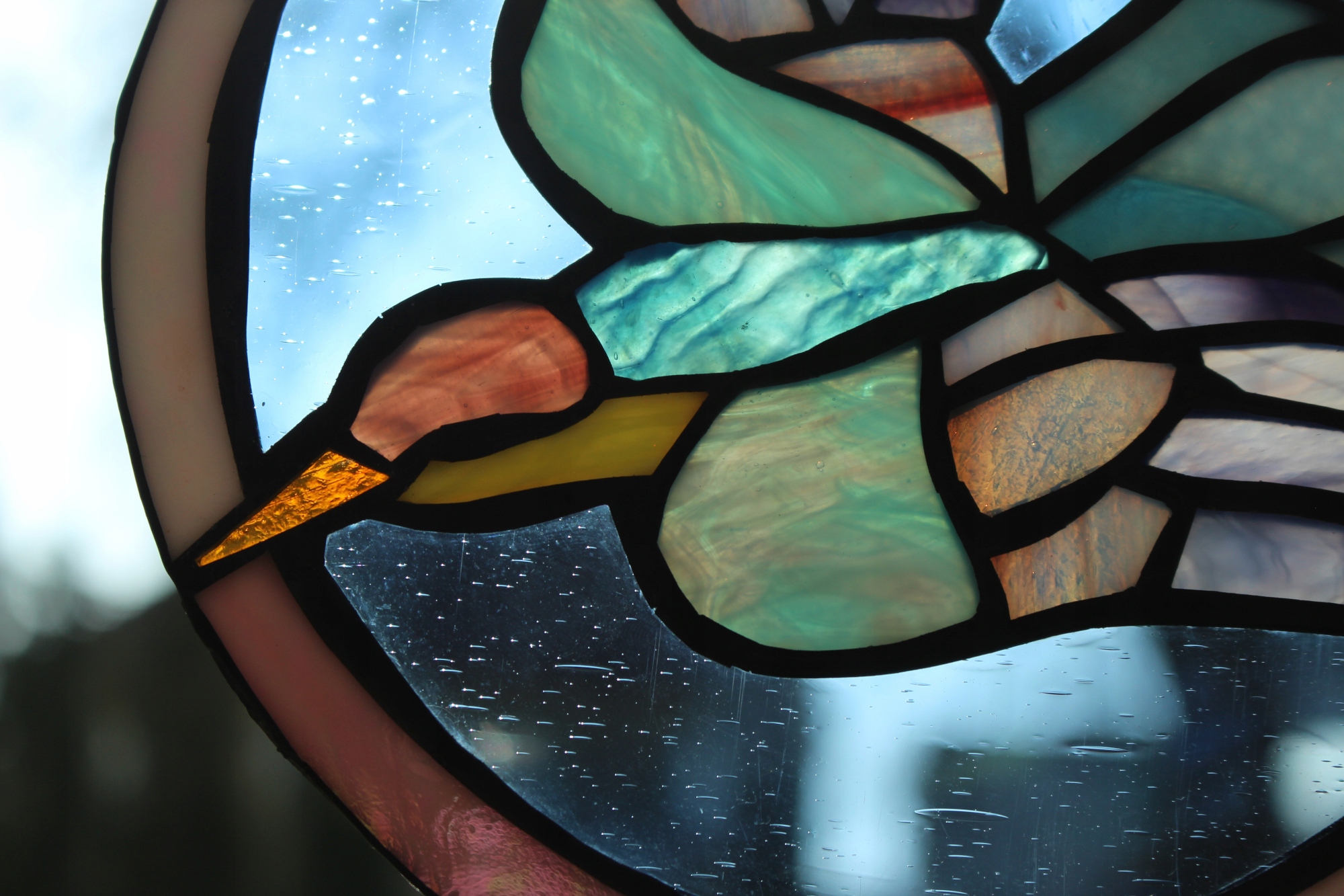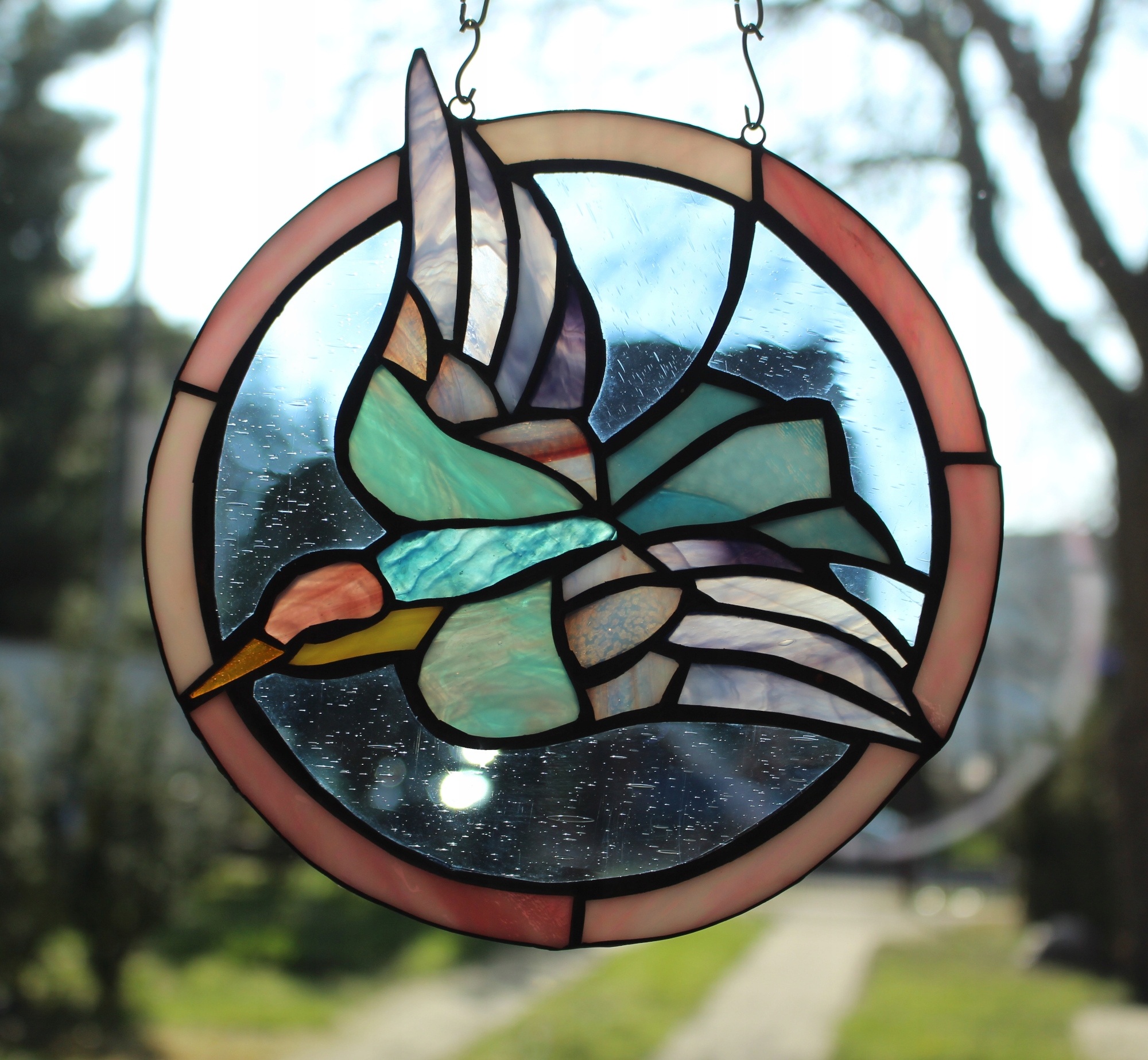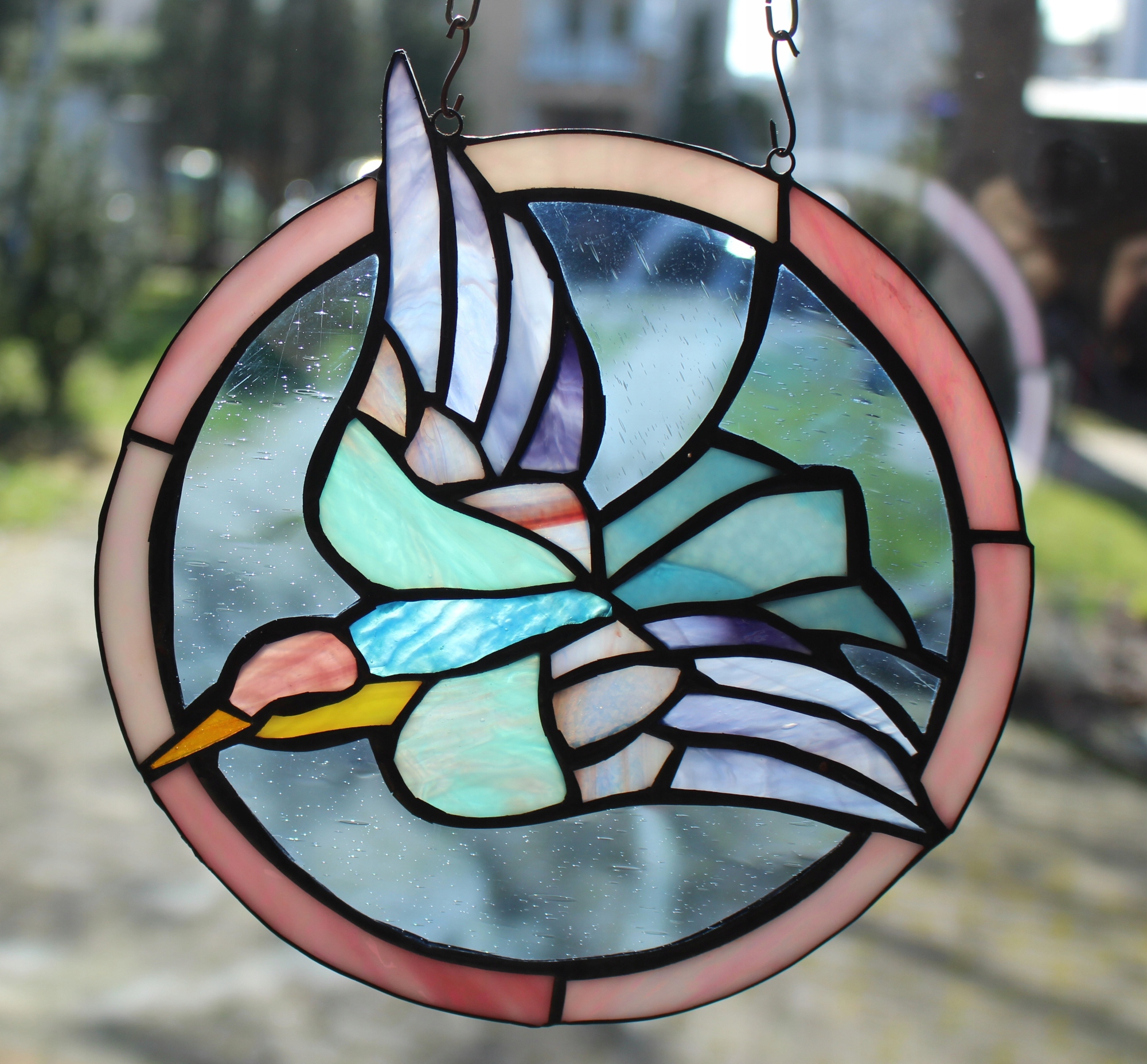 Круглий вітраж Тіффані, пташка колібрі, прикраса для вікон, пташка в подарунок