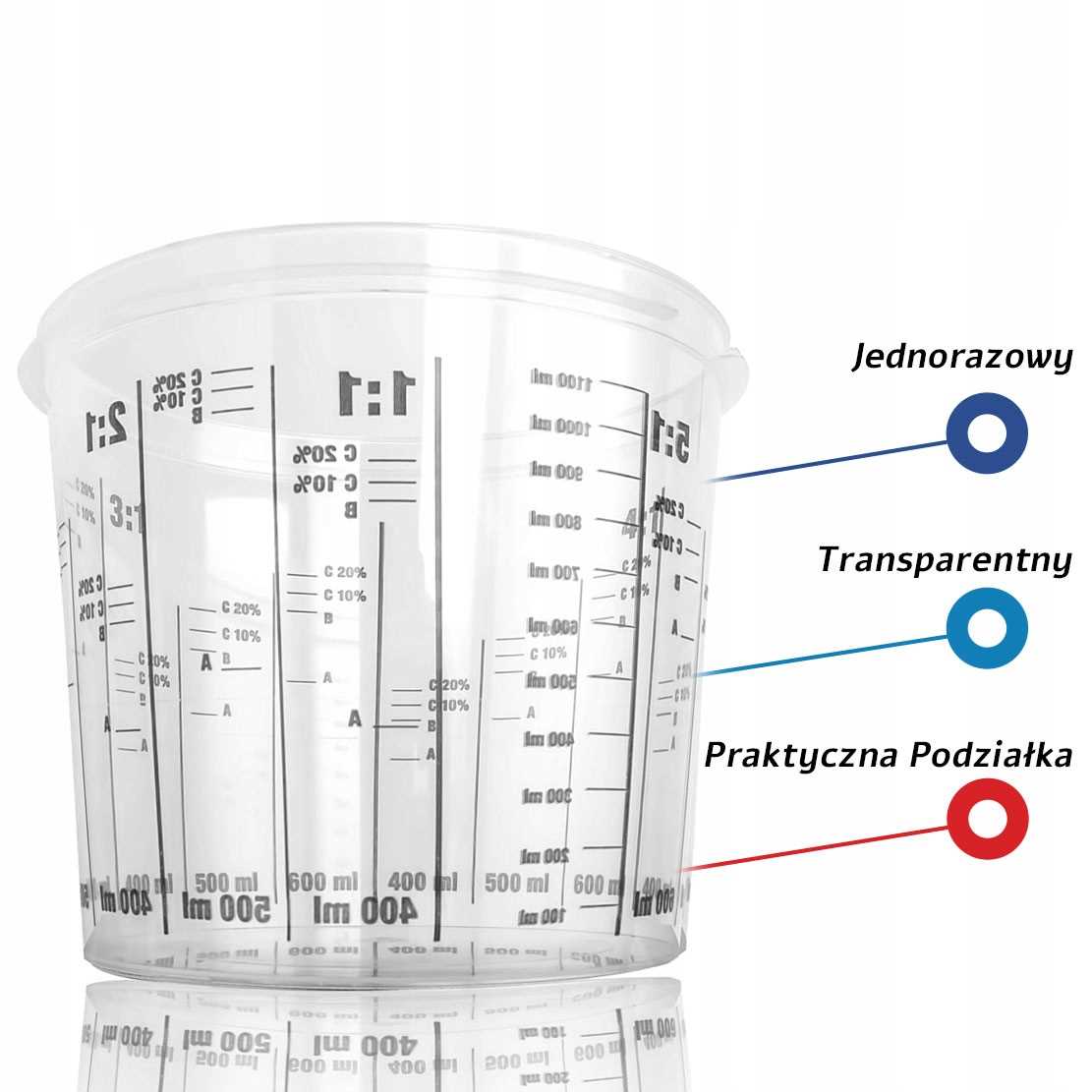 Прозрачный контейнер с напечатанной шкалой, позволяющей точно смешивать и отмеривать материал. Изготовлен из гибкого материала, что облегчает наливание жидкости. Кружка обладает антистатическими свойствами и не содержит загрязнений.