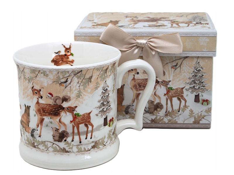 Принесите настоящее волшебство Рождества в свой дом! Эта уникальная фарфоровая кружка емкостью 450 мл восхищает очаровательным мотивом зимнего леса, оленей, белок и маленьких птичек. Это не просто кружка - это атмосфера, тепло и рождественская радость, заключенная в красивый фарфор.