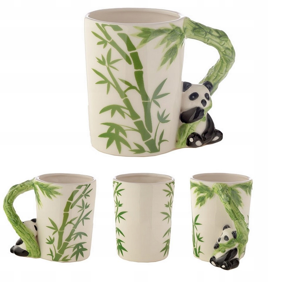 - кружка с пандой и ручкой из побега бамбука