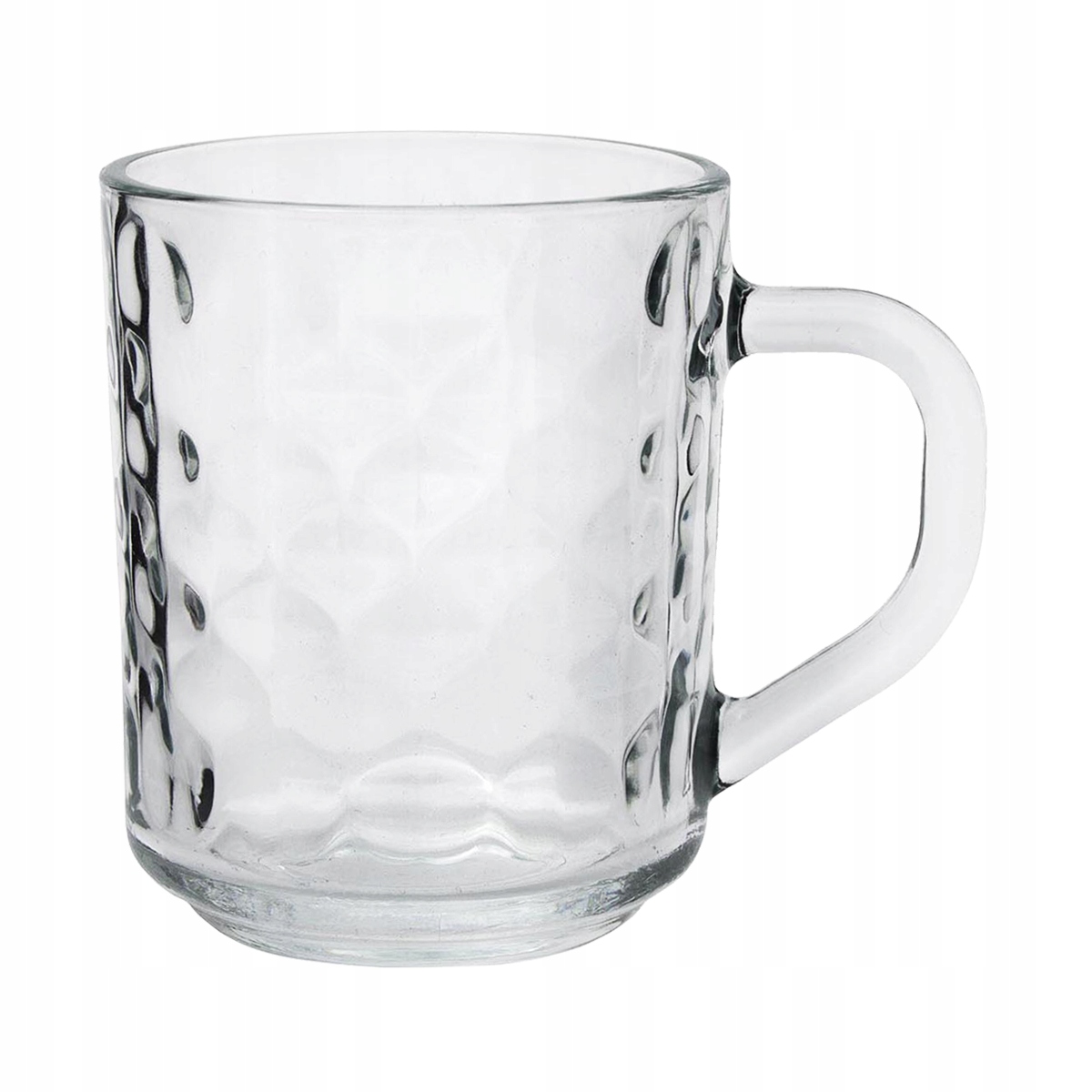 Стеклянная кружка емкостью 250 мл, с тиснением на поверхности. Идеально подходит для подачи ароматного кофе или чая.