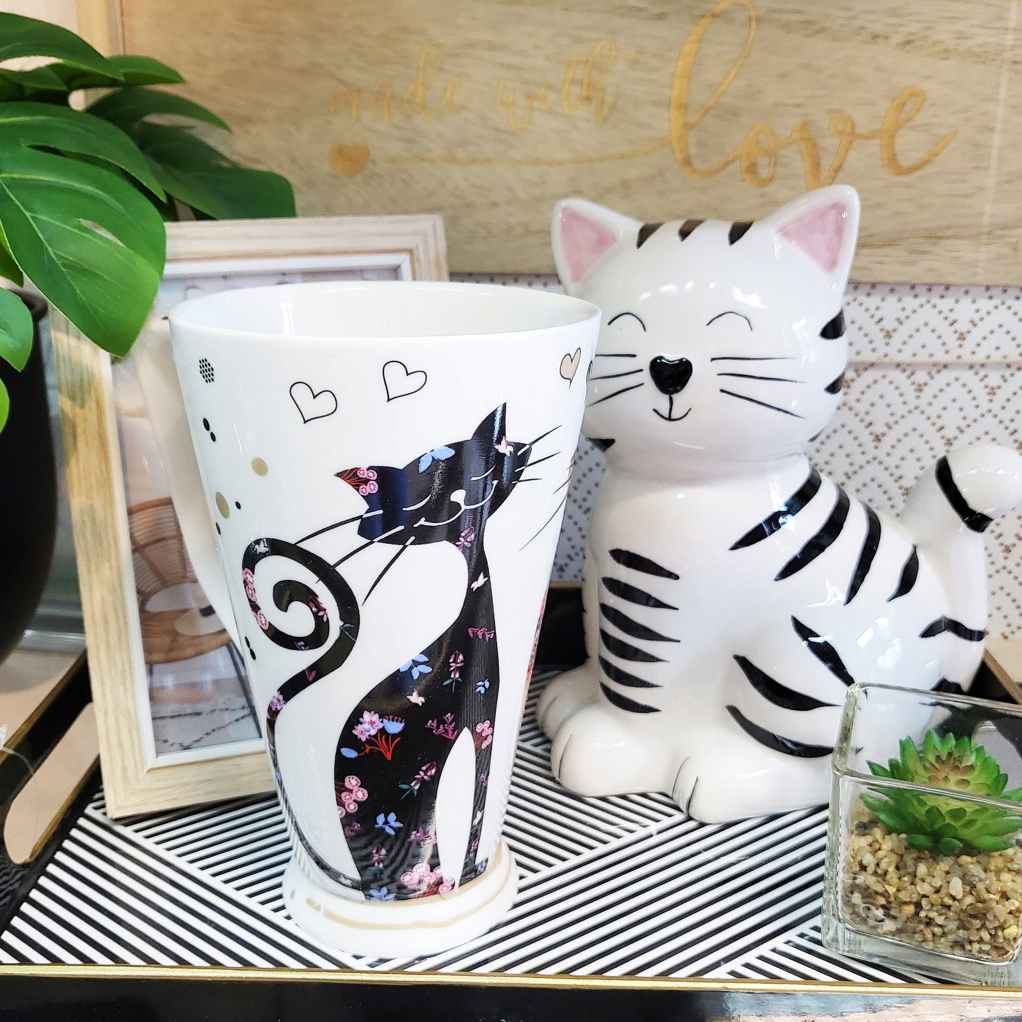 Кружка - Если вы ищете уникальный дизайн, который придаст вашему интерьеру оригинальный вид, вам наверняка понравится большая кружка с прямой ручкой из костяного фарфора, изготовленная специально для бренда Queen Isabell Collection. Лимитированная версия кружки имеет забавный кошачий мотив и упакована в элегантную подарочную коробку с той же графикой, что и на фарфоре. Изготовленный из высококачественного костяного фарфора, он прочный и устойчивый к царапинам, что делает его уникальным дополнением к вашему интерьеру. Эта единственная в своем роде кружка – идеальный выбор для людей, которые ценят уникальность и любят искусство.