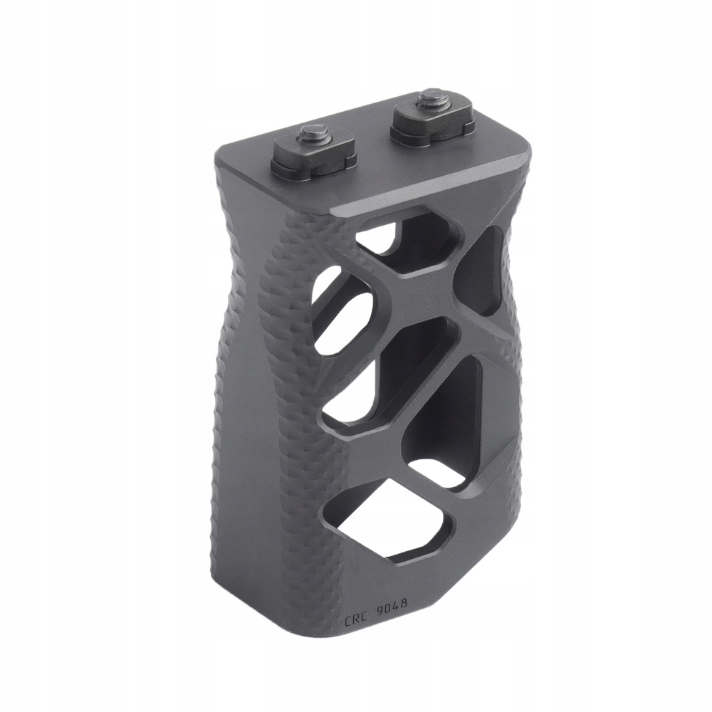 Простая передняя рукоятка, разработанная в первую очередь для карабинов AR от SVRN. Он имеет диагональный крой, который можно одинаково использовать спереди или сзади. Он изготовлен из фрезерованного алюминия 7075 Т6 с отверстиями и текстурированием. По бокам вырезано несколько отверстий для уменьшения веса, а спереди и сзади имеется текстурирование для увеличения поверхности захвата.