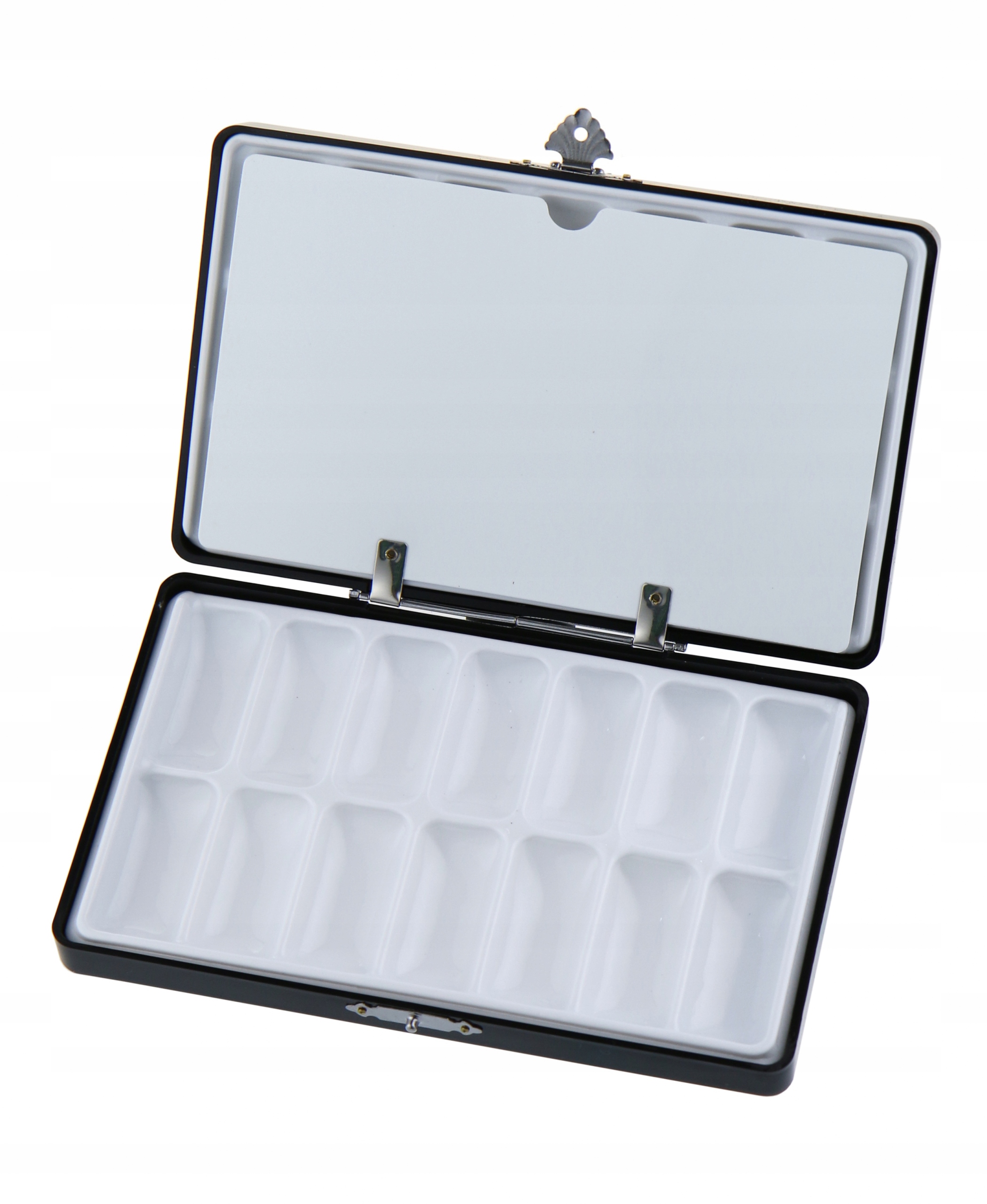 Палитра для смешивания компонентов торговой марки KRYOLAN (предлагает качественную декоративную, декоративную и уходовую косметику, а также предлагает потребителям надежные аксессуары). Поддон для смешивания компонентов пригодится не только в профессиональном использовании. Он также хорошо подойдет для повседневного макияжа. Изготовлен из пластика, содержит 35 полей двух размеров (21 маленькое, 14 больших). Его используют для смешивания тонального крема, консилера, румян, кремовых теней и помады для получения нужного оттенка. Палитра имеет форму удобной закрытой коробки, что гарантирует сохранение свежести смесей и возможность их повторного использования. Размер полей внутри позволяет беспрепятственно извлекать готовое косметическое средство. Изделие удобно в использовании и легко чистится.