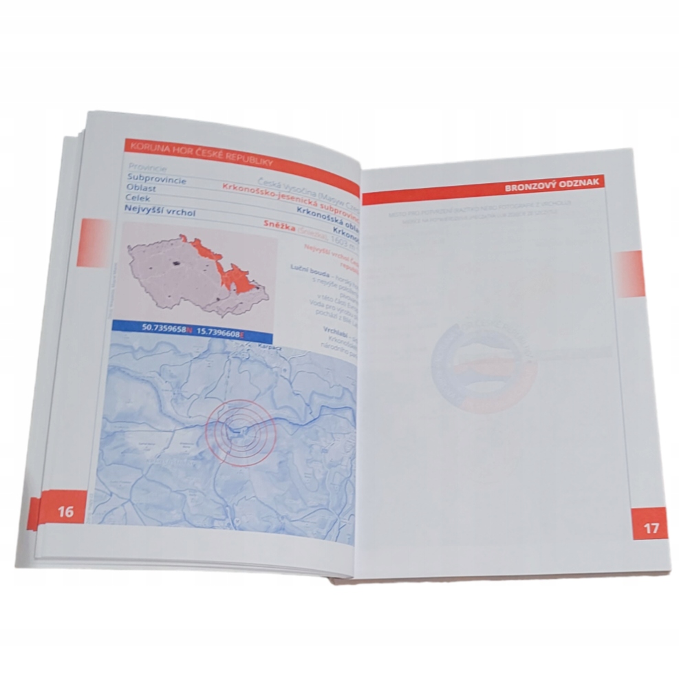Мы подготовили четырехуровневый значок Короны Гор Чехии, а также буклет на 176 страниц, в котором можно не только собрать подтверждения покоренных вершин, но и найти карты, GPS-координаты и краткую информацию. Информацию о том, что стоит посетить в этом районе, см.