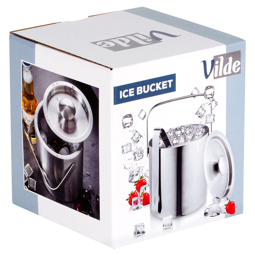 Тепловой ковш с плоскогубцами, изготовленным из твердых материалов. Это выглядит очень впечатляюще, поэтому на столе будет хорошо выглядеть. Мы будем использовать ведро для прохладных напитков, шампанского, вина и других напитков. Благодаря этому наши напитки всегда будут охлаждены во время мероприятий. Крышка позволит вам дольше сохранить температуру в ведре, а плоскогубцы обеспечат комфортное и гигиеническое удаление льда и поместив ее в стакан. Подходит для любого гриля, вечеринки, бара, свадьбы, мероприятий по общественному питанию, ресторана, отеля или сада. оригинальный вильде. Сделано в соответствии с европейскими стандартами