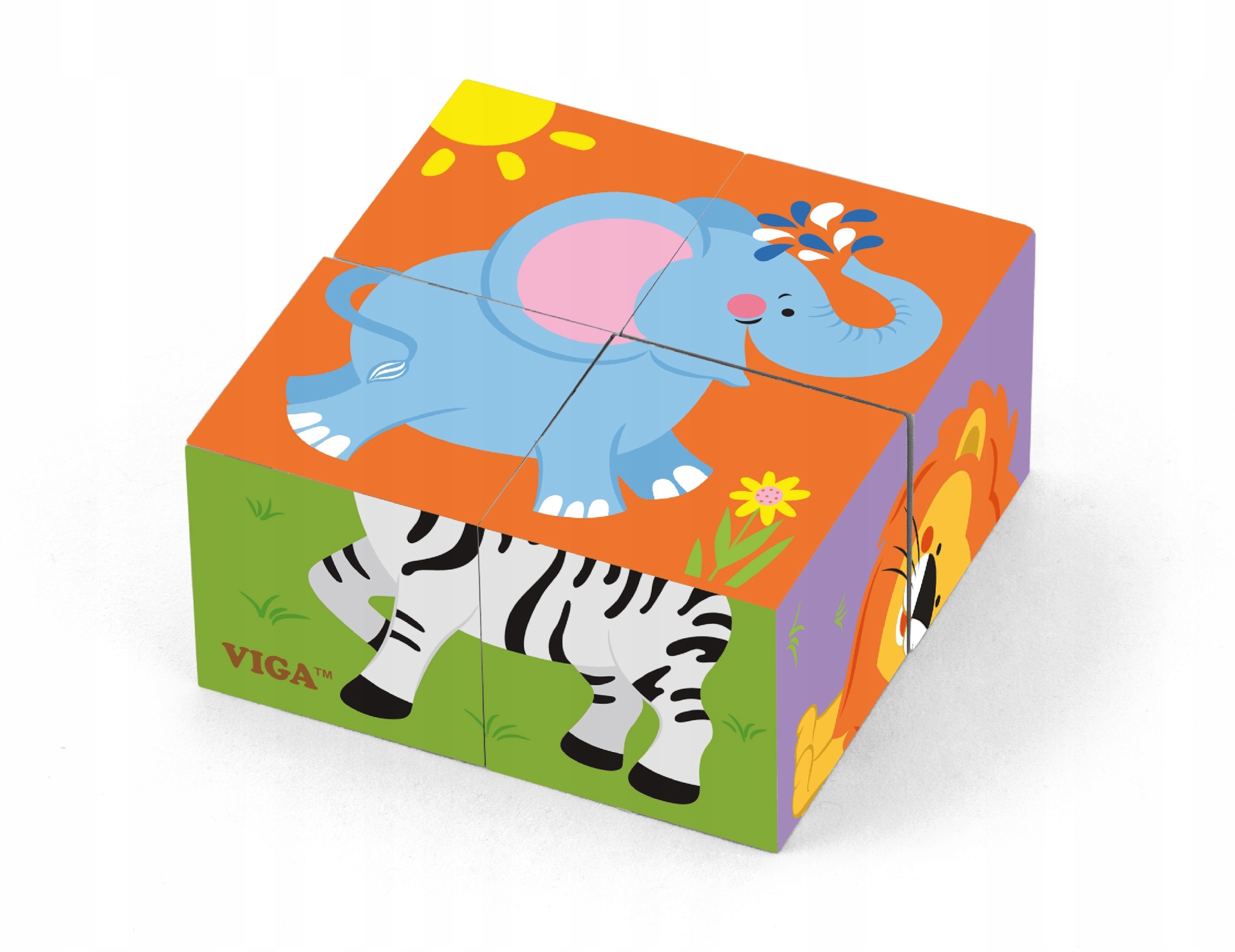 <р> Кубики-пазлы с изображениями диких животных от Viga — идеальная игрушка, которая понравится каждому ребенку. Эта головоломка хорошо помогает в развитии у малыша моторики и зрительно-моторной координации. Количество возможных комбинаций гарантирует хорошее развлечение, а также научит вашего ребенка сопоставлять узоры. Это идеальный подарок для тех, кто начинает свое приключение с головоломок. Набор состоит из 4 деревянных кубиков. <р> В наборе 6 разных картинок с мотивами диких животных, таких как: <р> слон <р> лев <р> зебра <р> тигр <р> бегемот <р> медведь <р> Игрушка предназначена для детей старше 2 лет. <р> Все сделано из лакированного дерева и окрашено нетоксичными красками в яркие цвета, которые удовлетворят каждого пользователя и доставят массу удовольствия. <р> Нашим приоритетом является безопасность и качество наших товаров, поэтому мы следим за тем, чтобы краски, которыми мы красим наши игрушки, были нетоксичными и соответствовали стандартам безопасности (EN71 и ASTM). <р> ТЕХНИЧЕСКИЕ ДАННЫЕ <р> Размер продукта: <р> длина: 90 мм х высота: 90 мм х ширина: 45 мм <р> Размеры упаковки: <р> длина: 182 мм х высота: 182 мм х ширина: 47 мм <р> ИНФОРМАЦИЯ О БЕЗОПАСНОСТИ ПРОДУКТА <р> Viga 50836 Кубики-пазлы - зоопарк <р> Игрушка предназначена для детей от 24 лет и старше. <р> ПРОДЮСЕР: <р> Нинбо Вига Международная Компания, ООО <р> 20F, 588 CANHGAI ROAD <р> 315040, НИНБО, Китай <р> электронная почта: sales@vigatoys.com <р> ИМПОРТЕР: <р> PM INVESTMENT GROUP Napert, Soszyński Sp.k. <р> Подкова 18 <р> 04-937 Варшава, Польша <р> электронная почта: info@pminvestment.pl <р> РУКОВОДСТВО ПОЛЬЗОВАТЕЛЯ ВАЖНО! ПРОЧИТАЙТЕ ВНИМАТЕЛЬНО И СОХРАНИТЕ ДЛЯ ДАЛЬНЕЙШЕГО ИСПОЛЬЗОВАНИЯ. <р> ПРЕДУПРЕЖДЕНИЯ! Перед использованием игрушки снимите упаковку. Перед использованием игрушки проверьте, все ли элементы надежно затянуты. Не используйте игрушку, если какая-либо часть повреждена или отсутствует. Очистка: Протирать влажной тканью или щеткой с мягкой щетиной, смоченной мыльной водой. Не замачивайте древесину в воде. После стирки вытрите насухо чистой тряпкой.