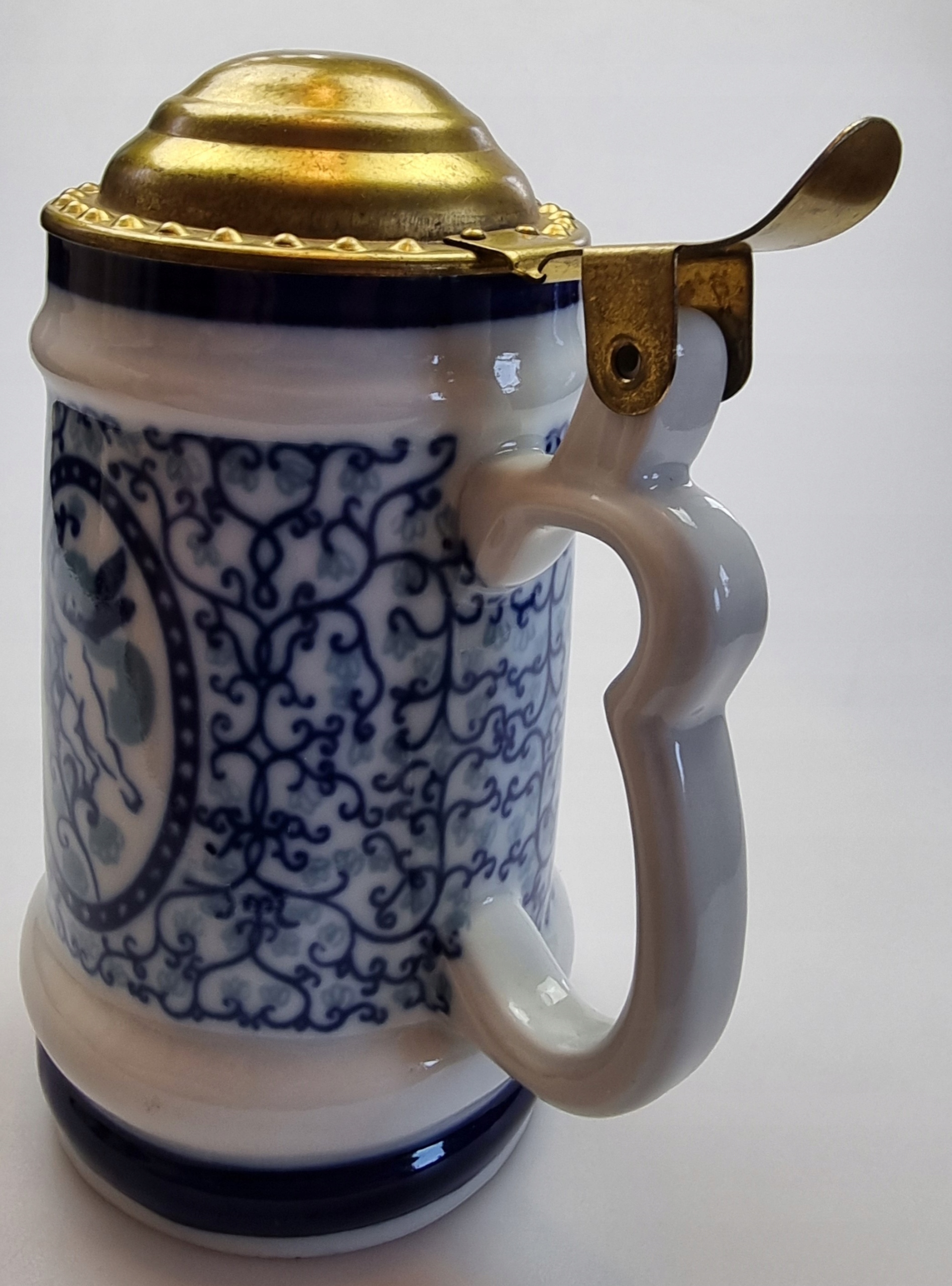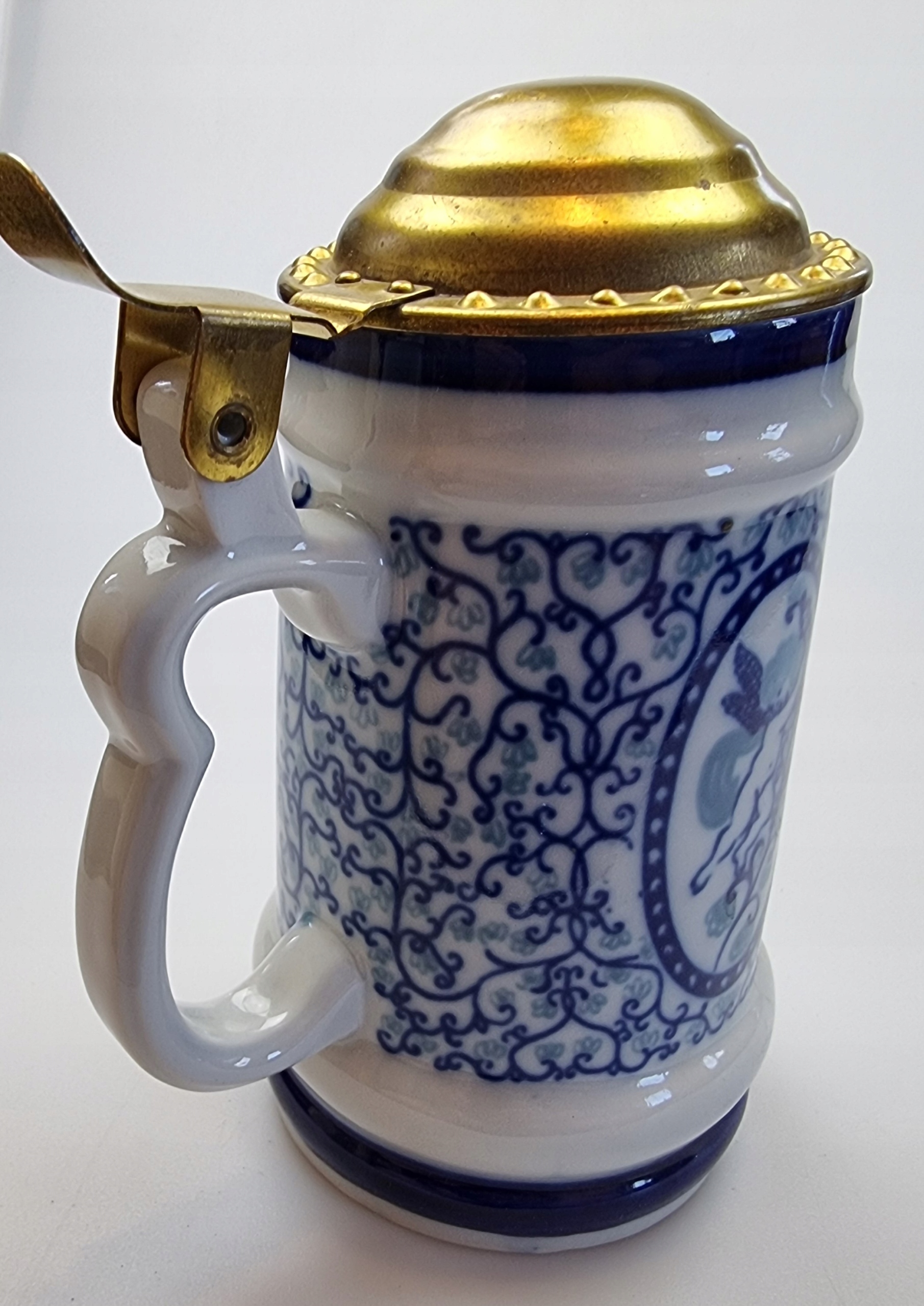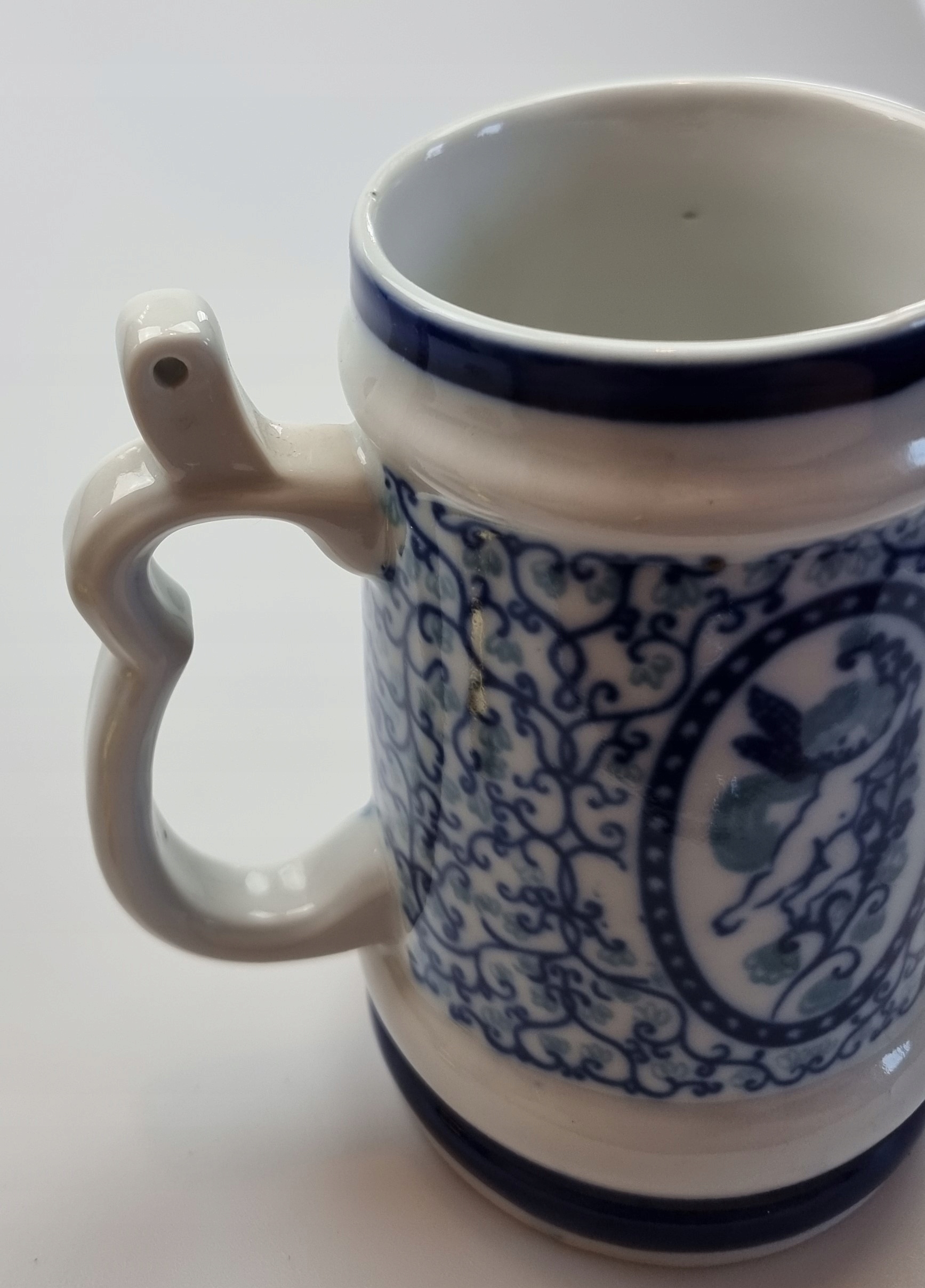 Kufel pokrywką motyw wiejski kolekcjonerski Bogucice PRL 4