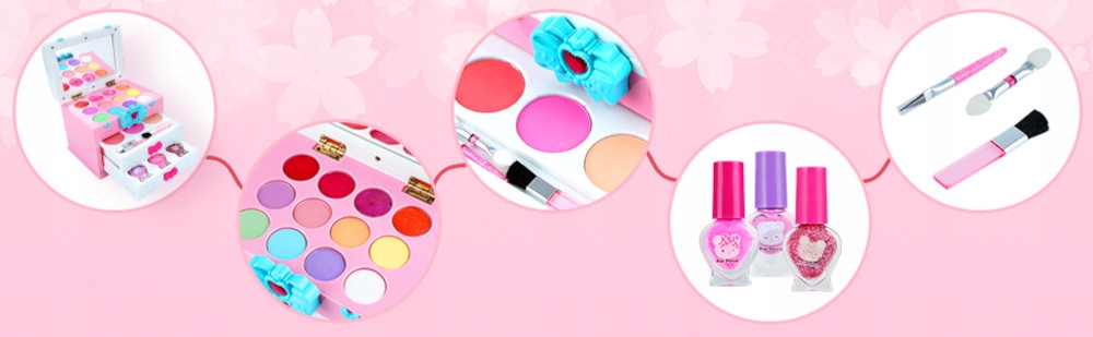 Косметика, помещенная в футляр, полностью безопасна, сертифицирована, не вызывает аллергии и очень легко смывается. Лак для ногтей очень легко удаляется с ногтевой пластины без использования жидкости для снятия лака. Просто вымойте руки под водой и потяните слой лака, и он снимется сам. Ребенок смывает макияж с лица водой.